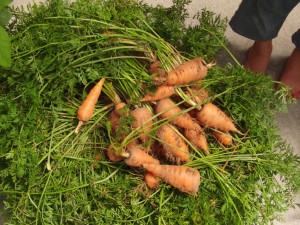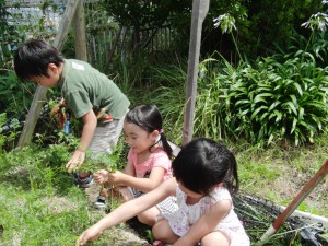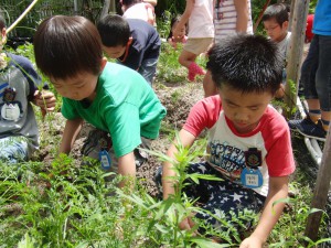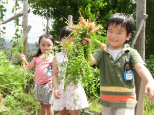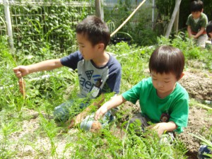 2012.07.19 年長 にんじん掘り 2012年7月17日(火) 今日は、にんじん掘り! 年長さんは毎日、楽しい大忙しだね! 育ってるかなぁ・・・おっ、あったぞ! かーわいいにんじんさんも! 見て見てーーー!! こんなに掘れたよ。 お泊まり会のカレー用に、準備バッチリ!!だね! こんなに掘れたから、一本ずつ持って帰ろう。 お家の人も、喜ぶだろうな。 一覧に戻る