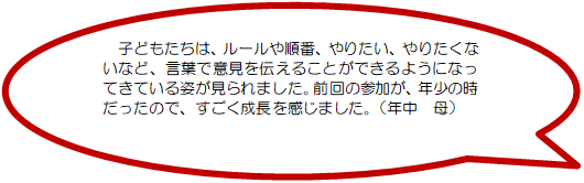 (※保護者のコメントと画像は、ランダム掲載です。)