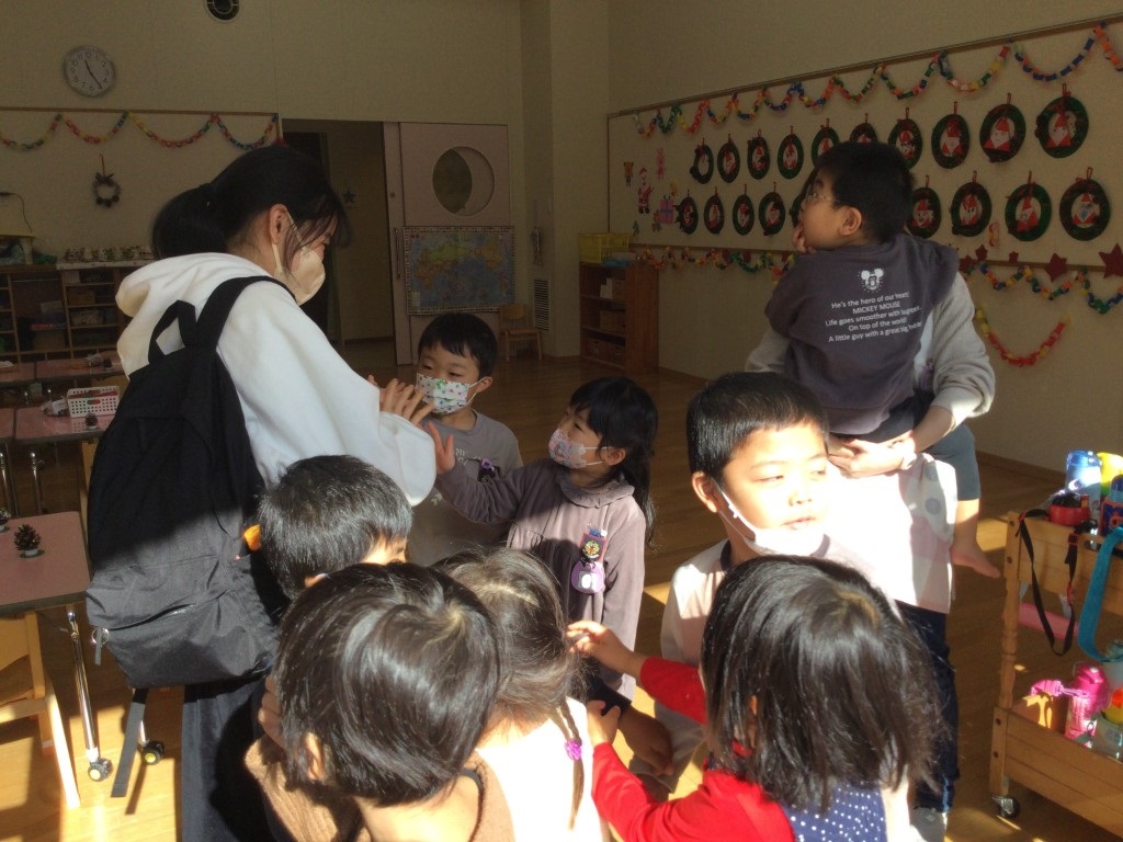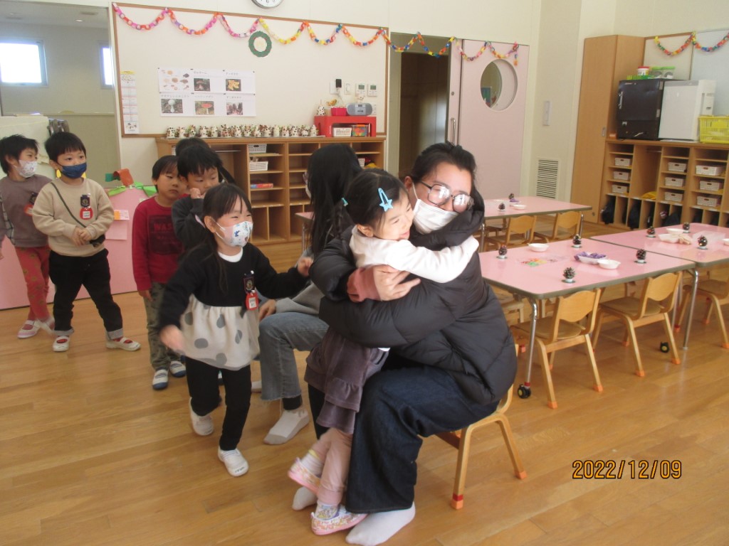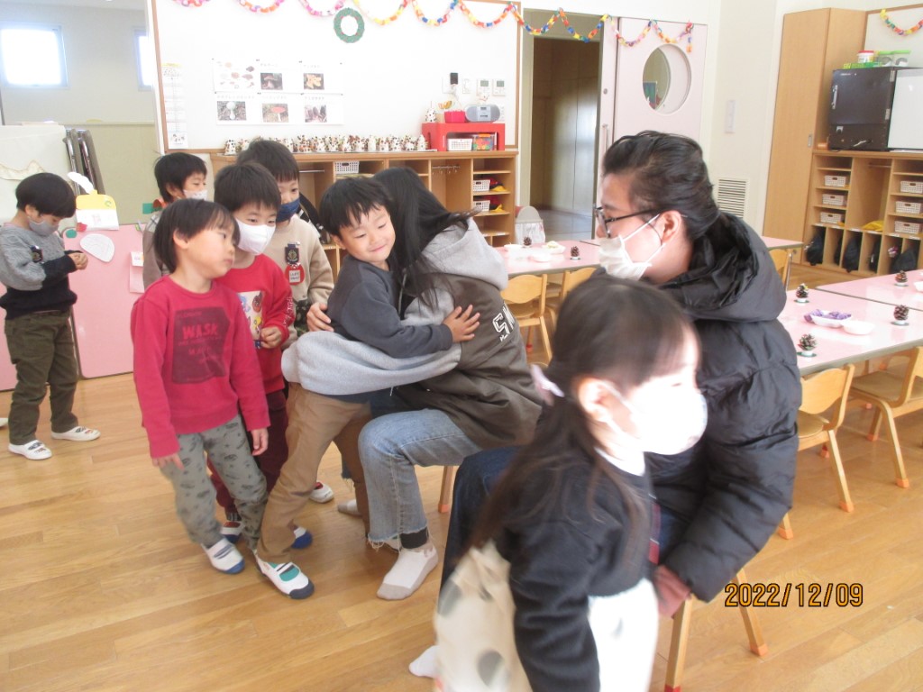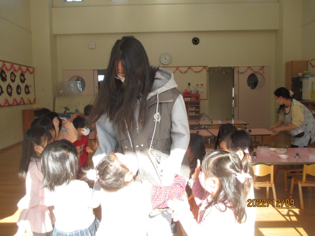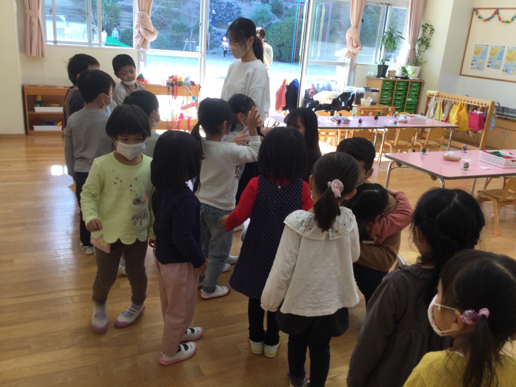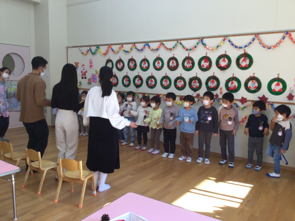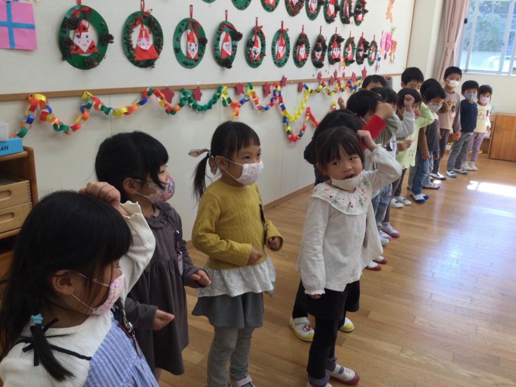 完成後は、みんなでまつぼっくりツリーを見せ合いました。