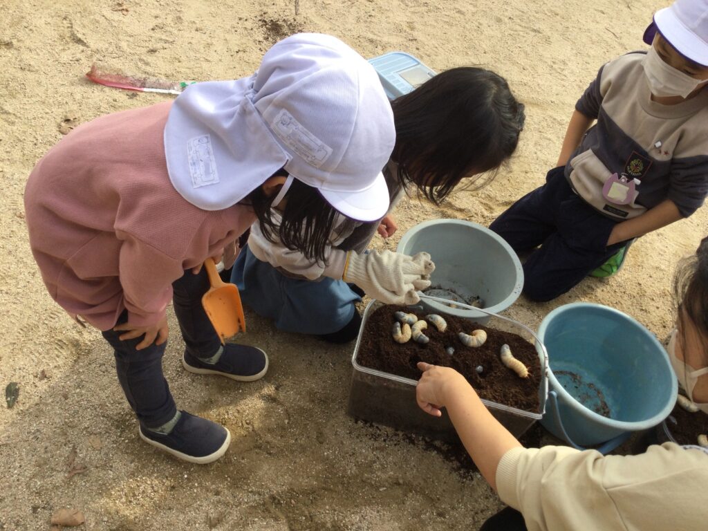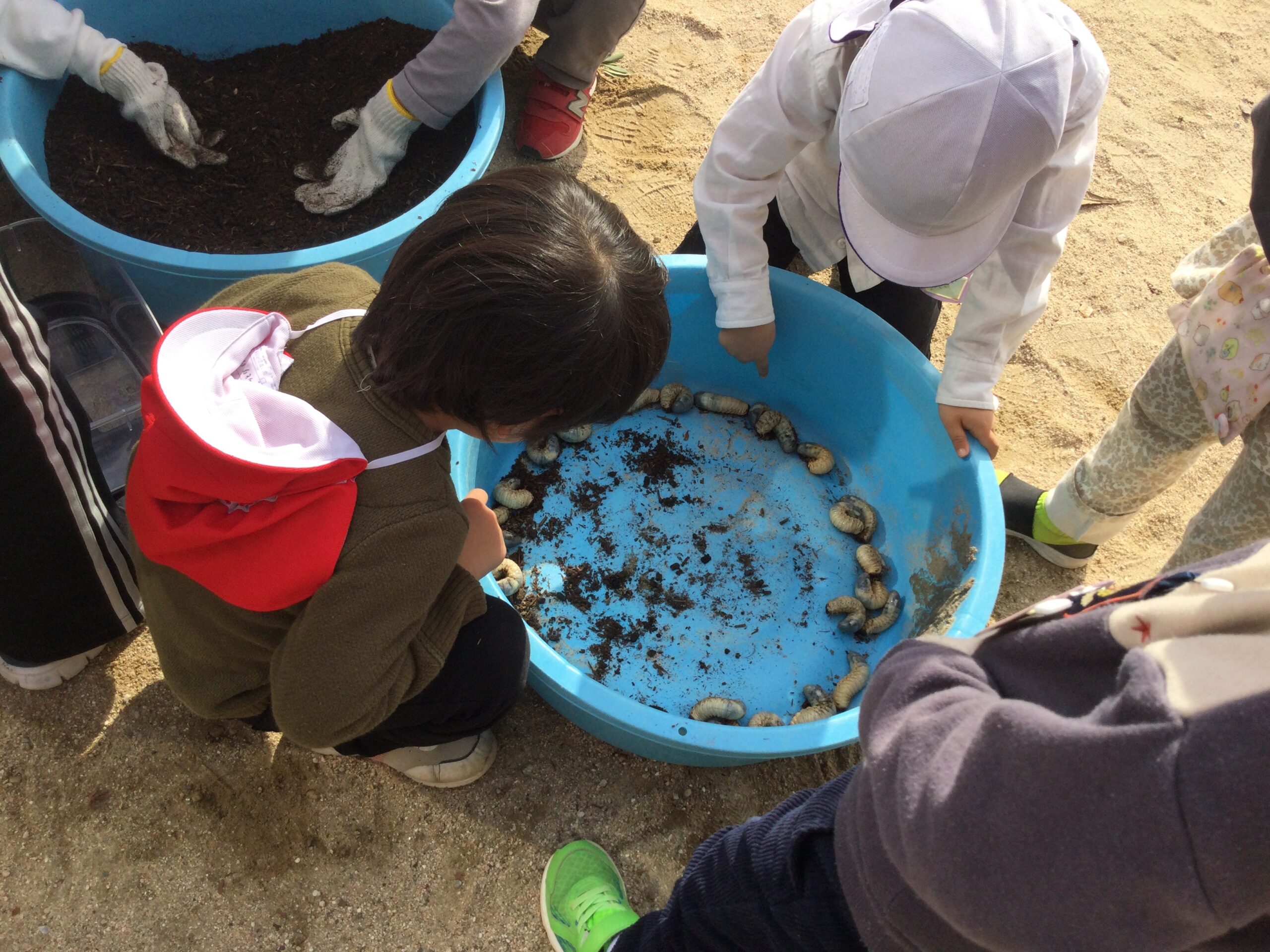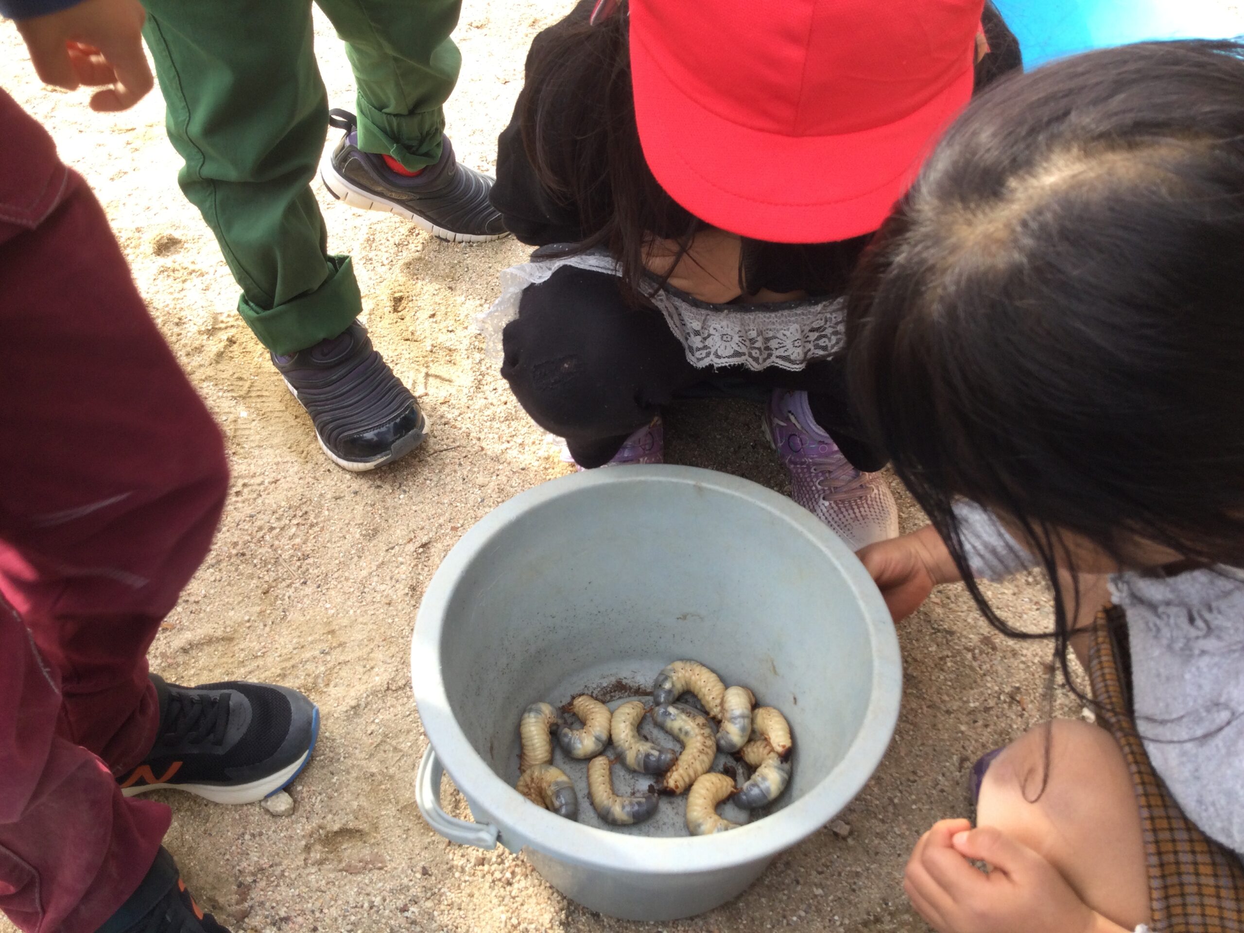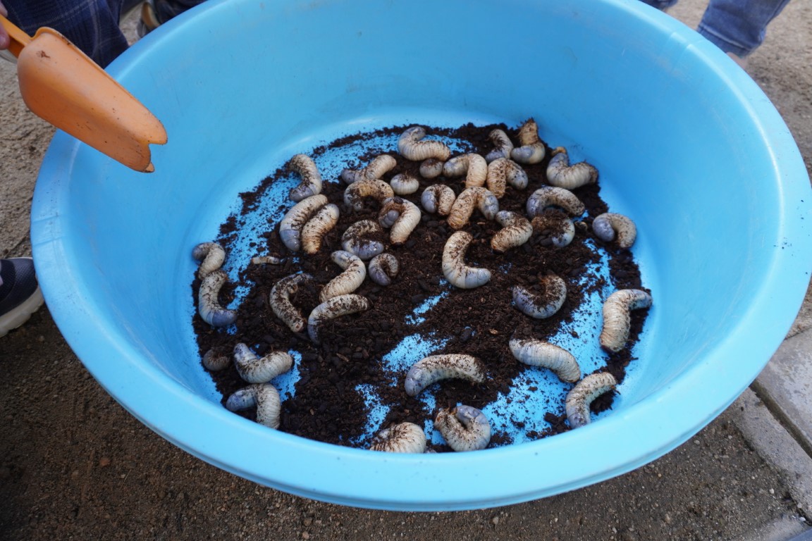 ホワイエで大切に育てられていたカブトムシの幼虫。