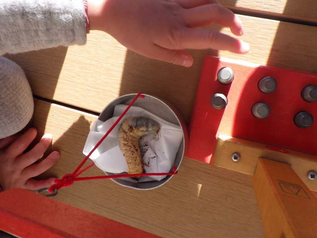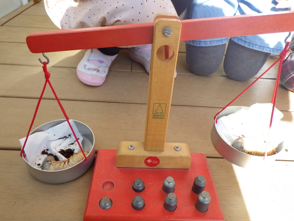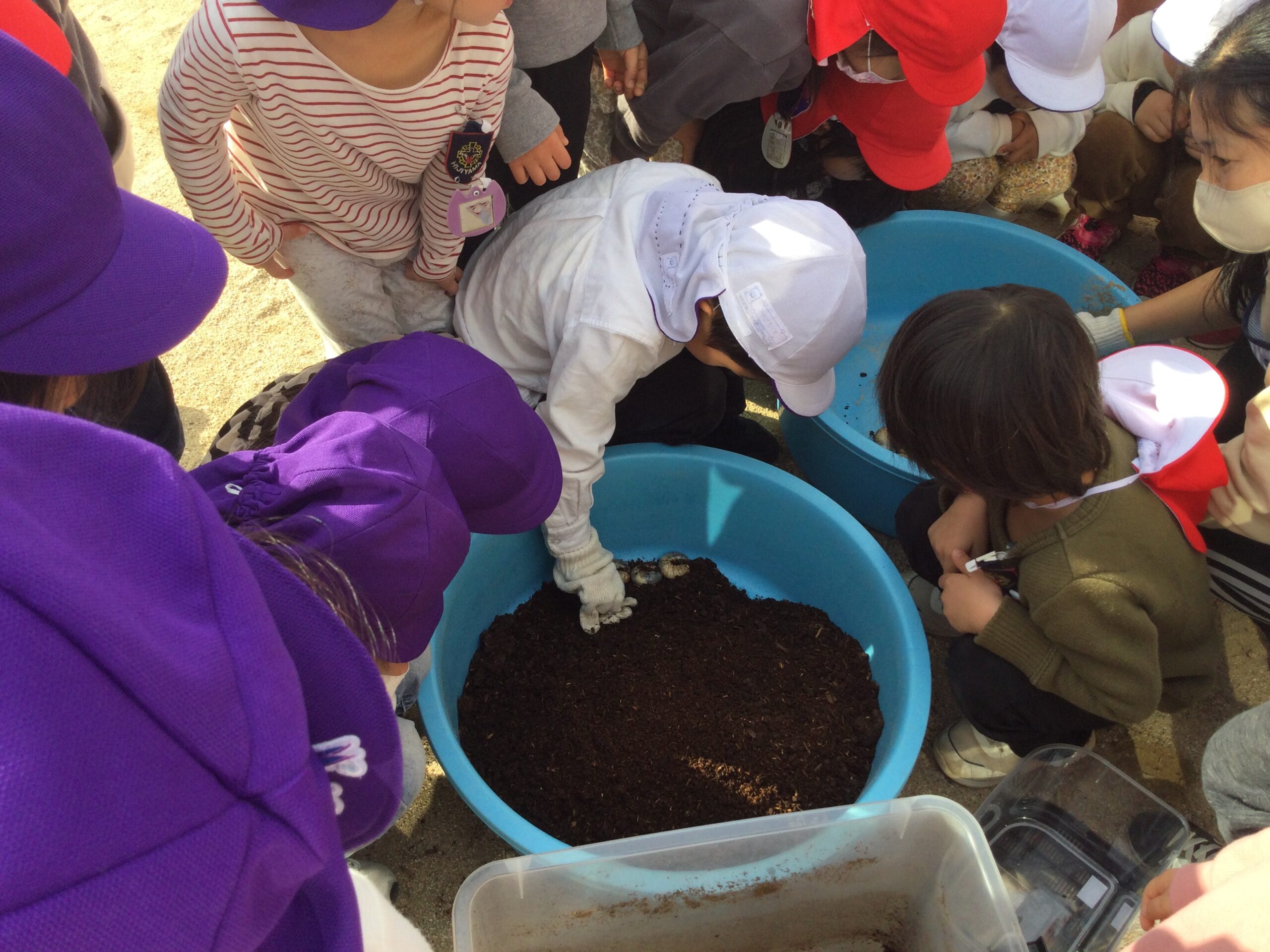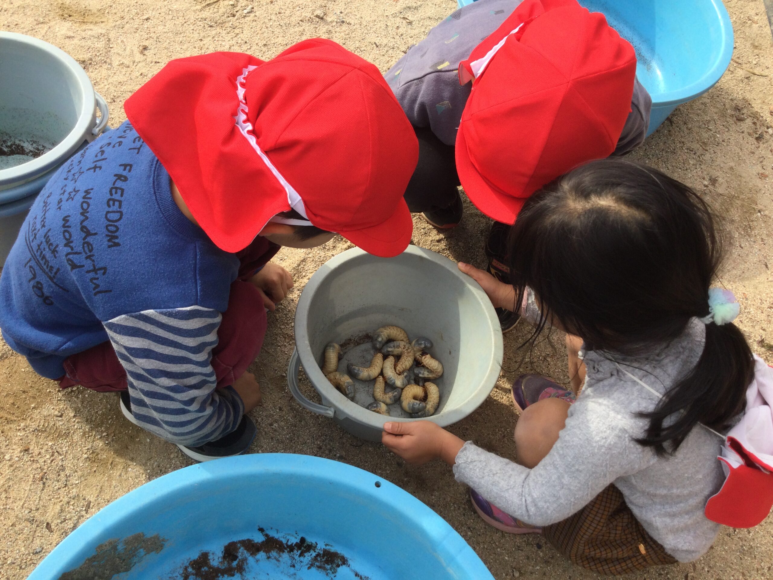 ホワイエで大切に育てられていたカブトムシの幼虫。