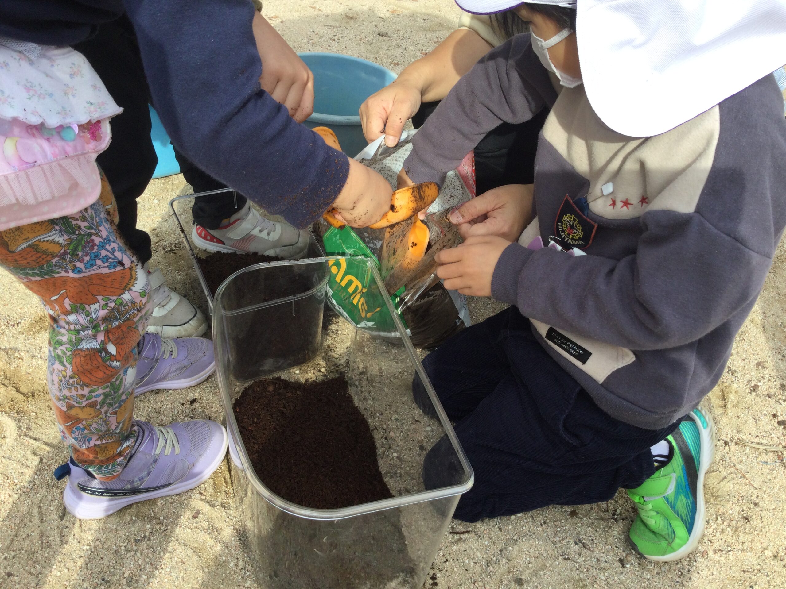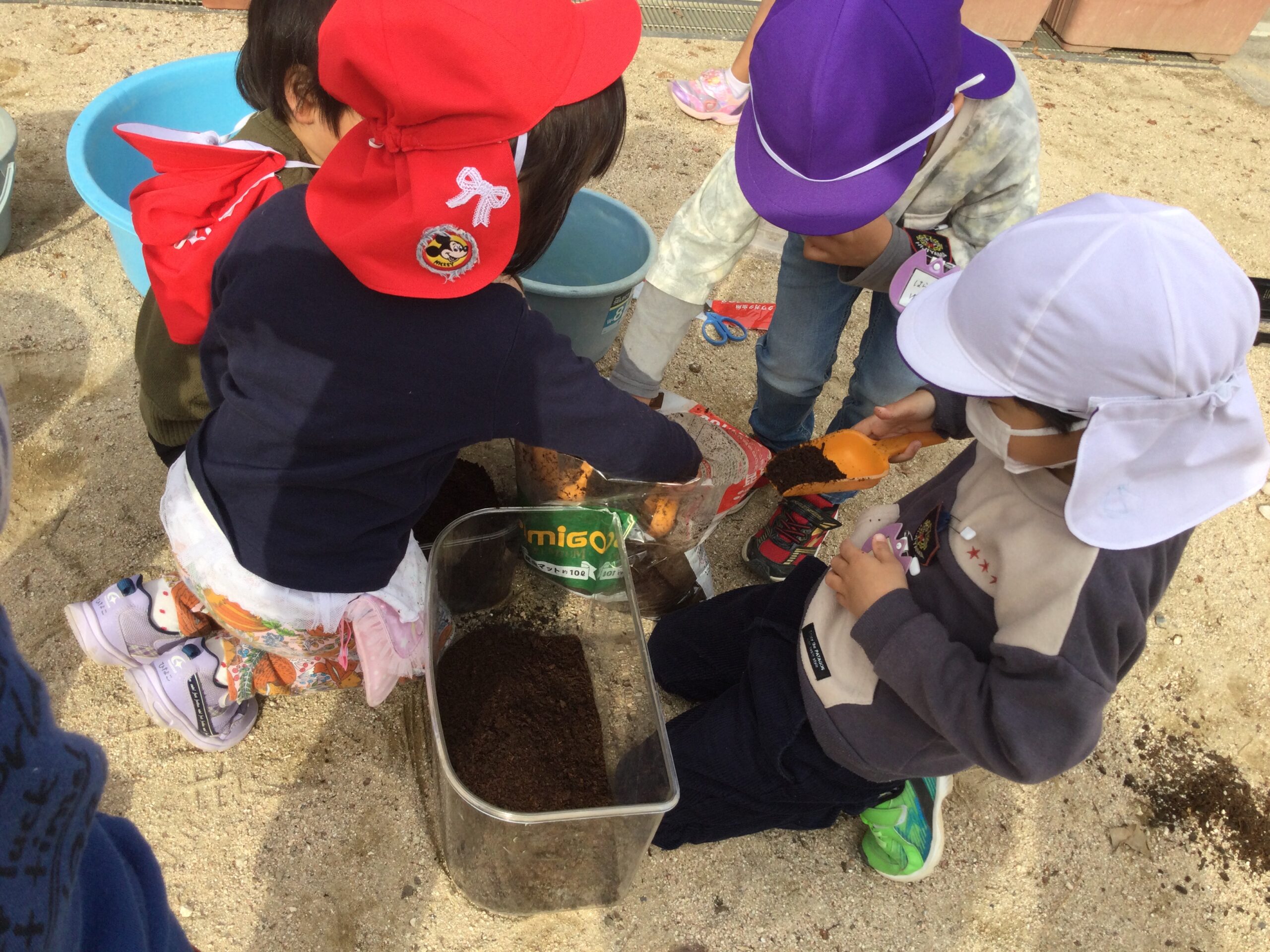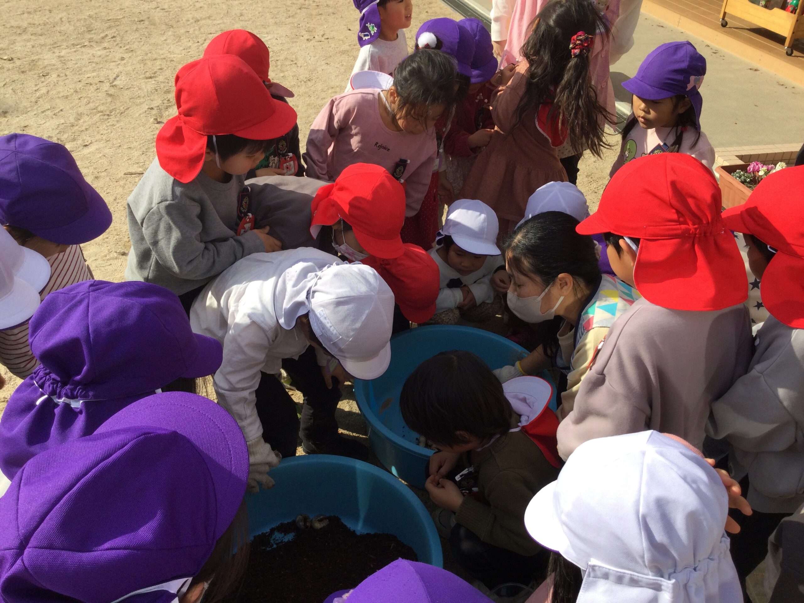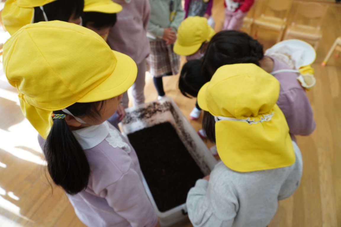 ホワイエで大切に育てられていたカブトムシの幼虫。
