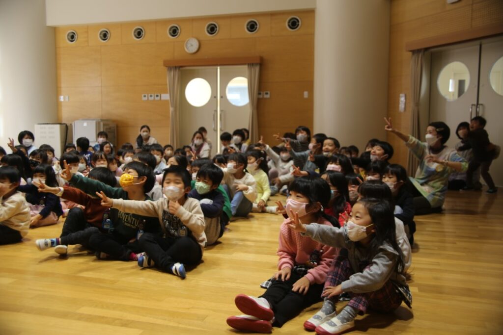 子どもたちが、「実がおちてくるのはいつかな…?」と