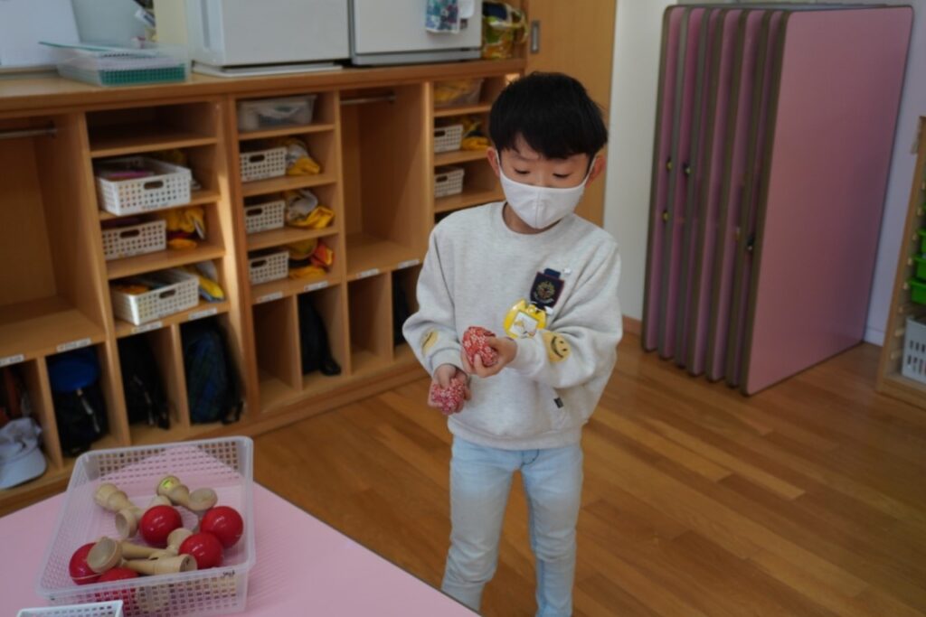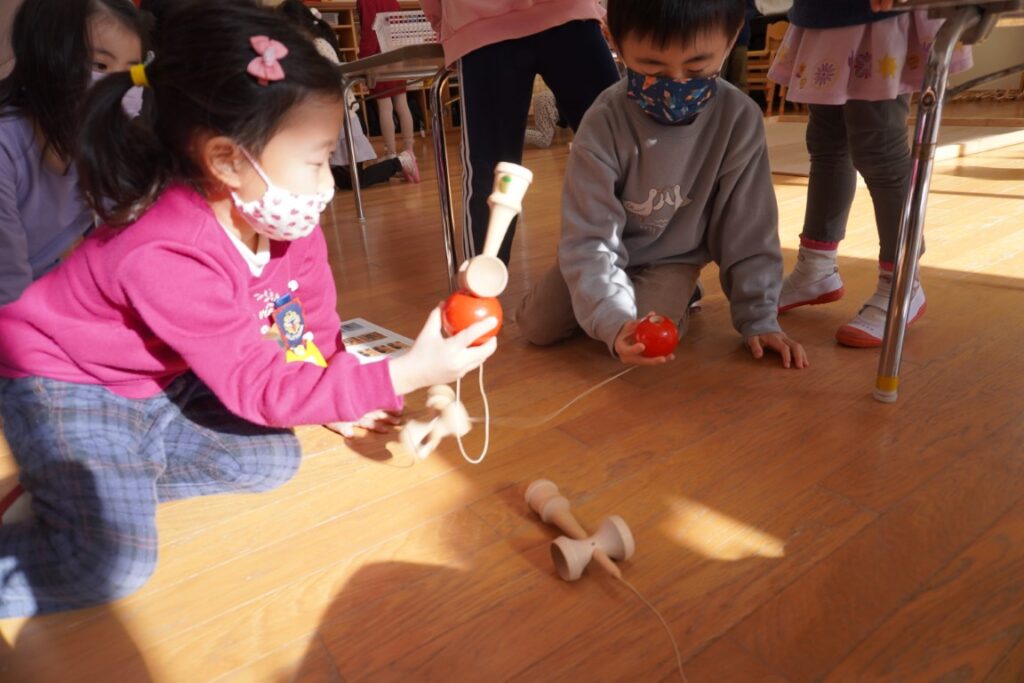コマ以外の伝承遊びも楽しんでいる年長組。