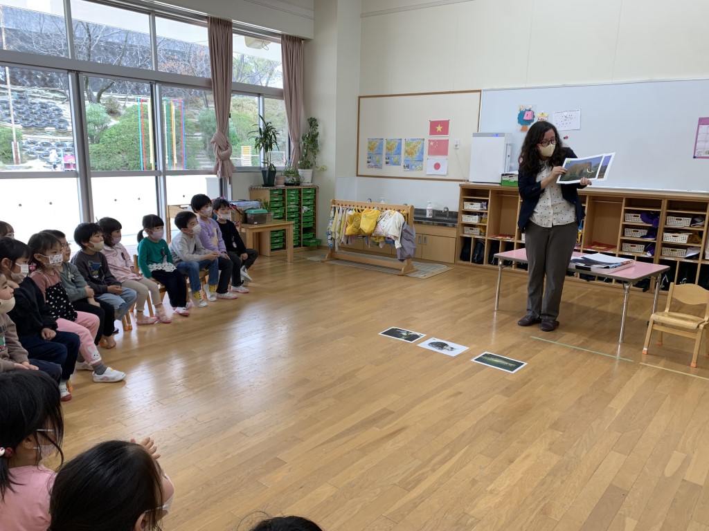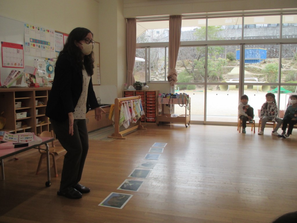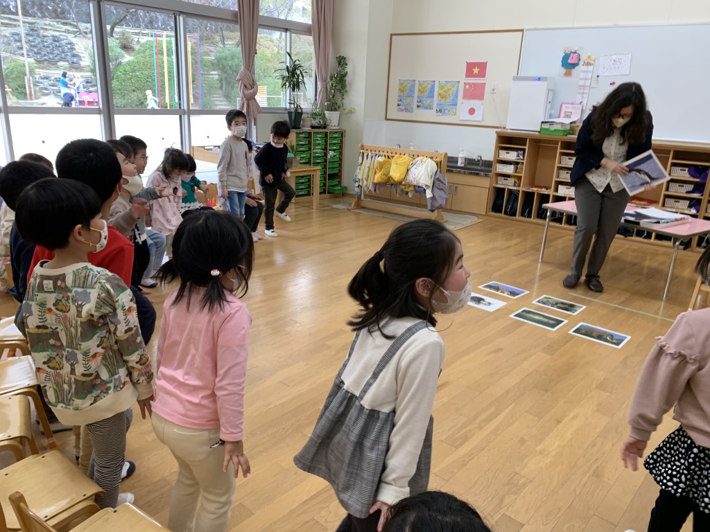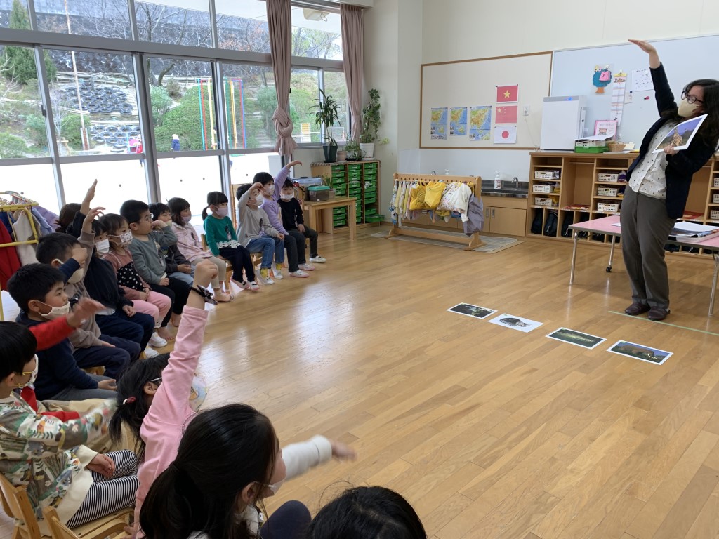 キャサリン先生が、子どもたちがよく知っている色のカードを出すと…
