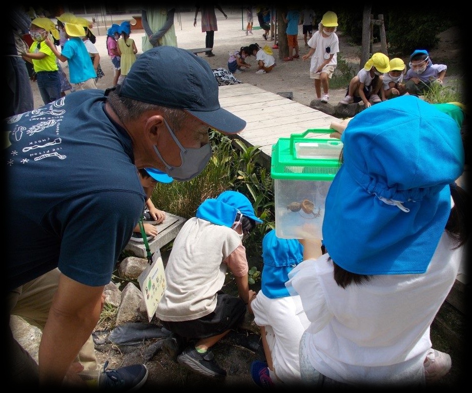 施工者の梶岡先生が、生き物好きのお仲間と一緒に、