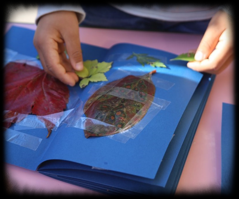 いろいろな種類の葉に触れ、図鑑を作ったり、