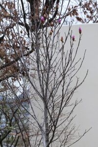 記念樹『もくれん』が、きれいな蕾をつけ、