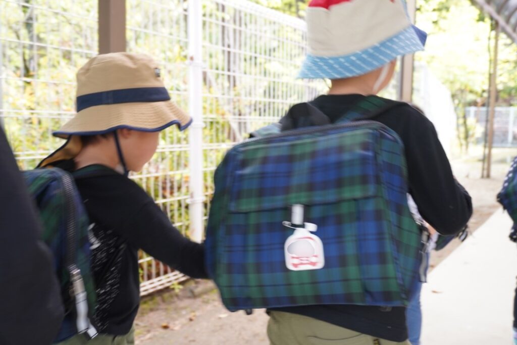 先輩の手をぎゅっと握って登園。