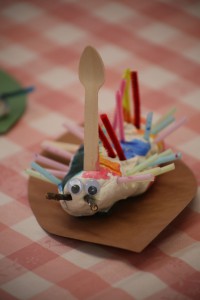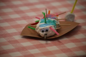 運動会で楽しんだ海賊ごっこの延長で、廃材で船も作ったよ。