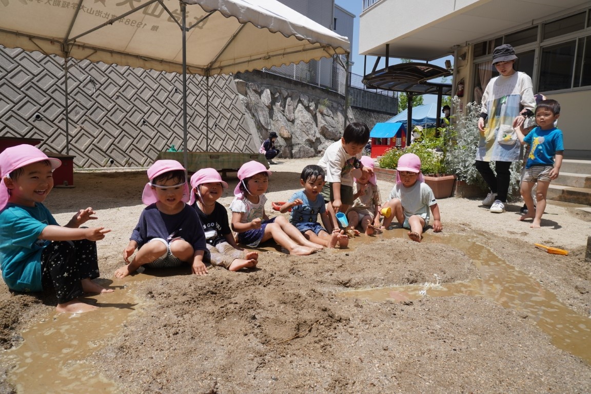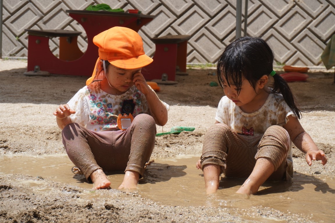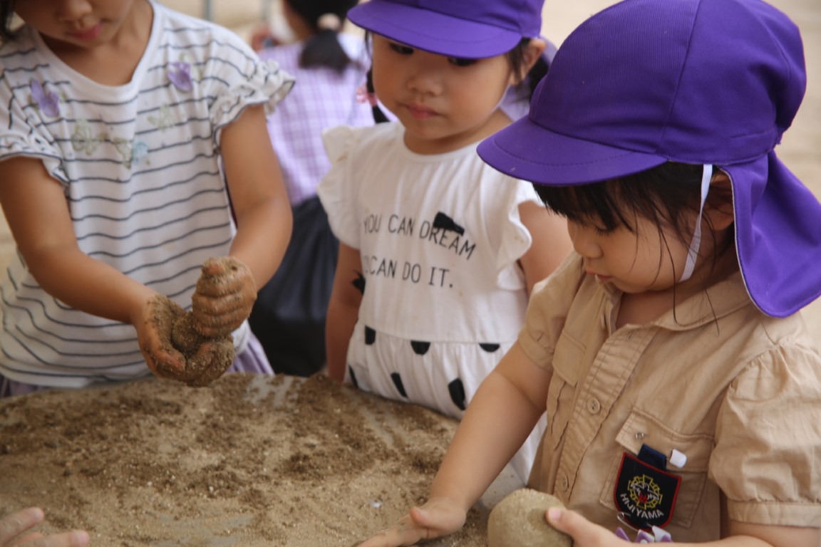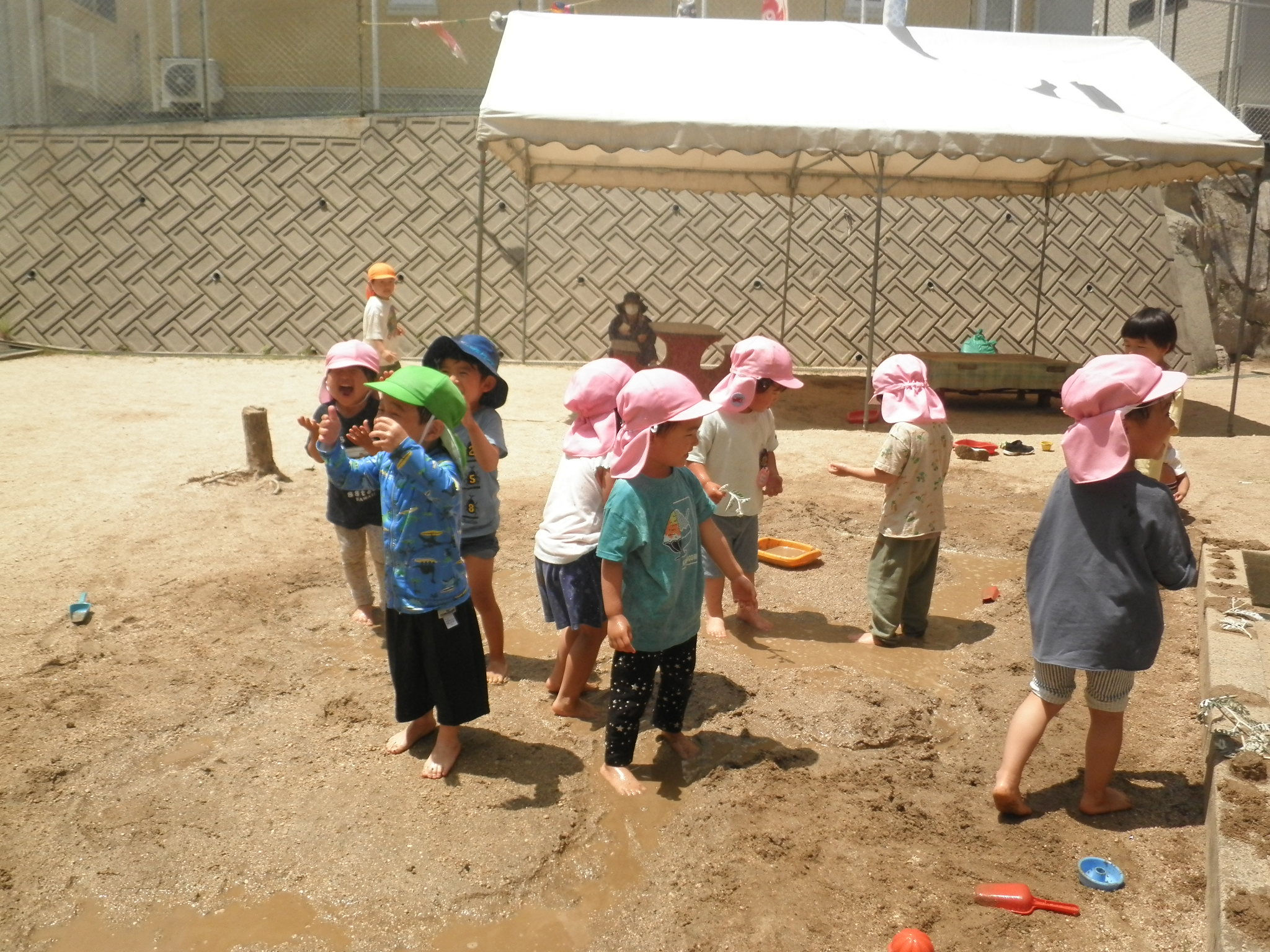 (うまくできるかな?)(泥に触るのちょっと苦手…)