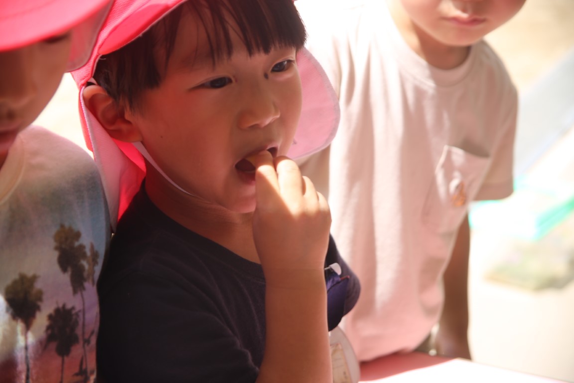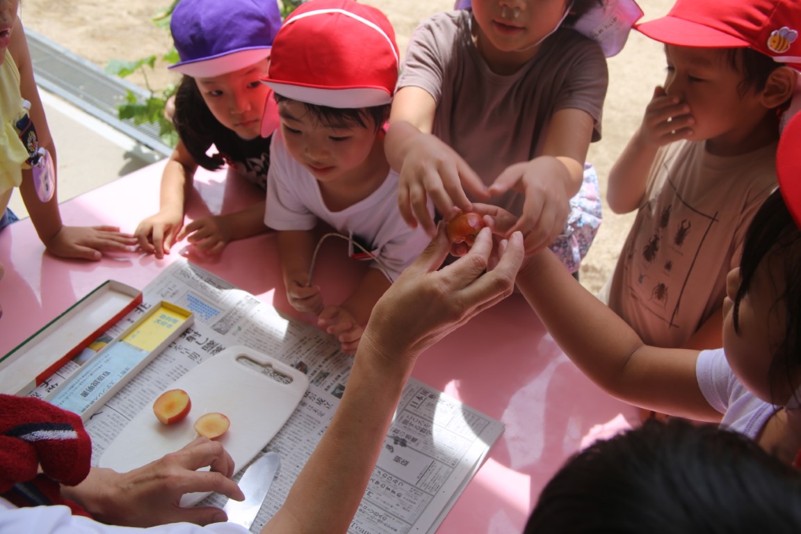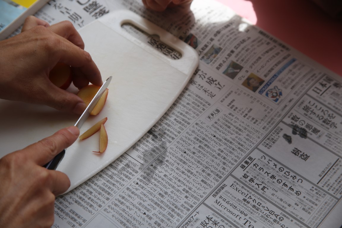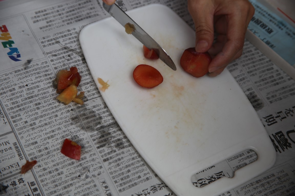 一つの実を…小さく切って分けっこ。