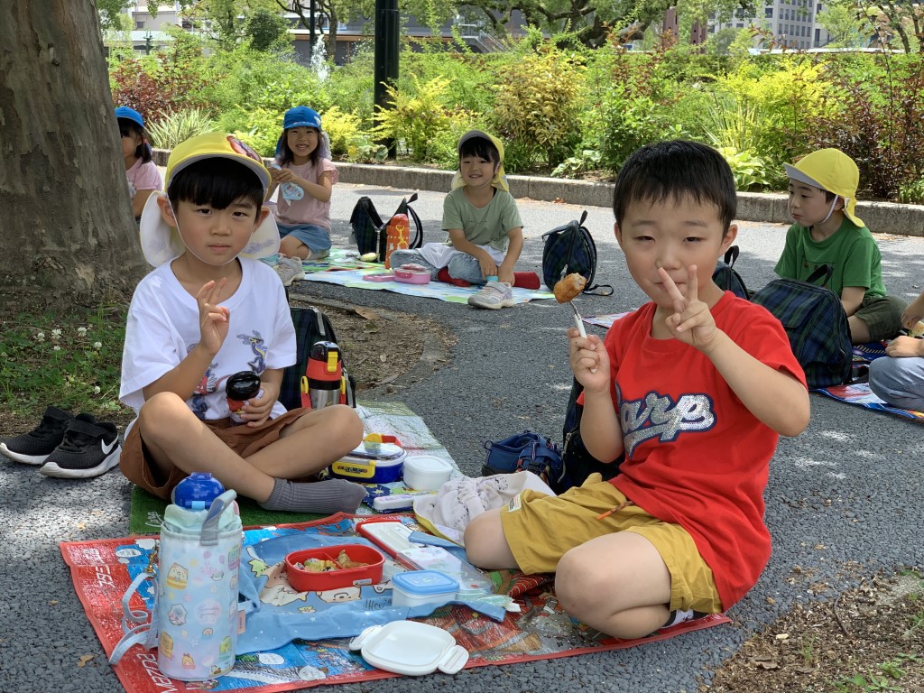 食後は近くの広場で、虫探しをしたり、