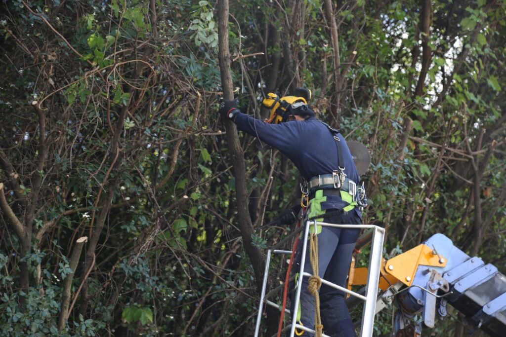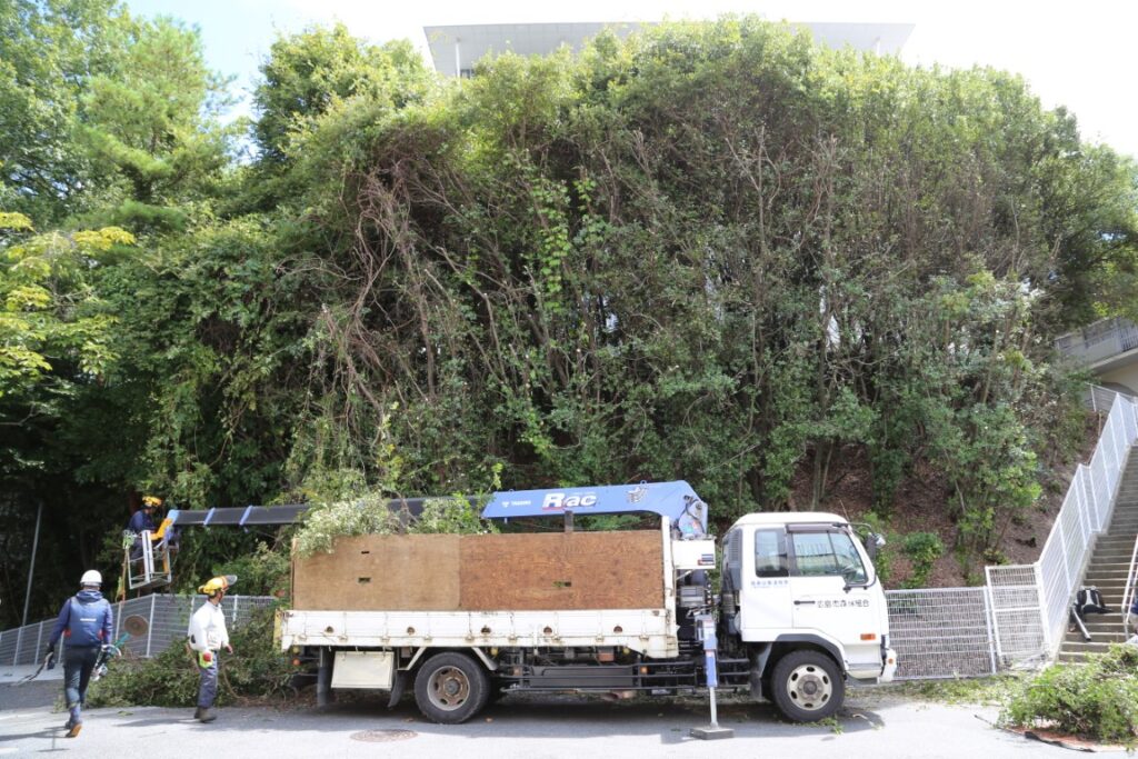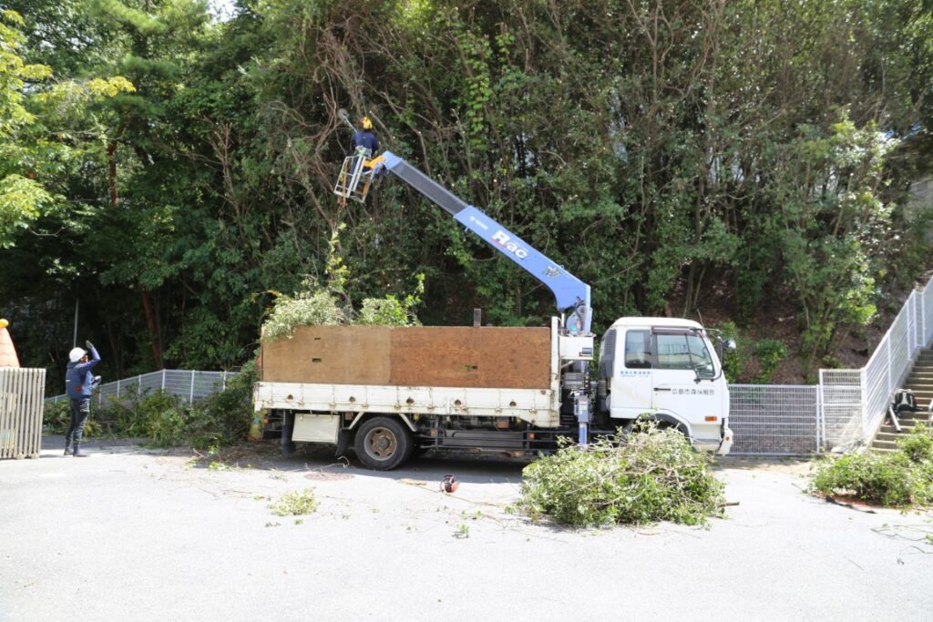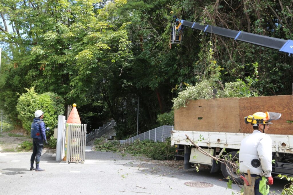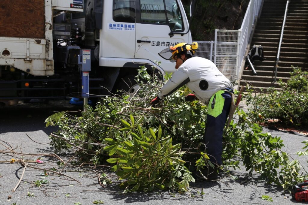下に落ちてきた枝や木は、少し小さく切ってから、
