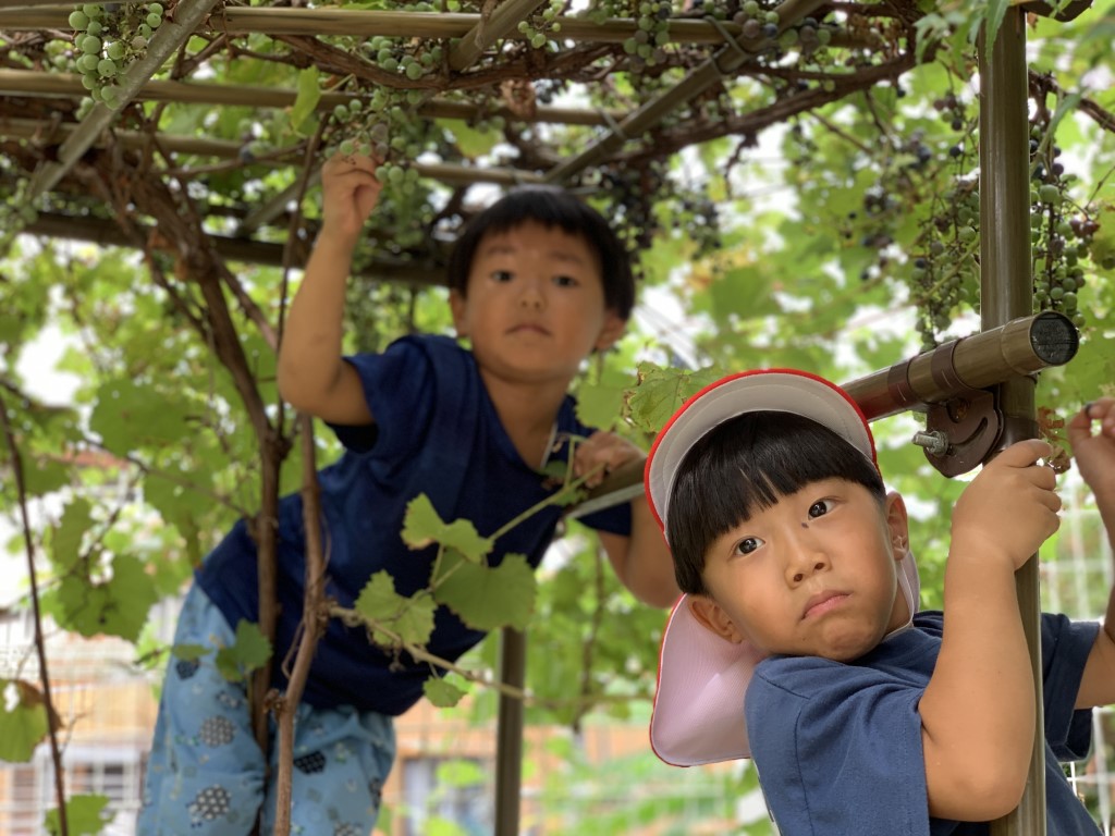 ブドウの木の周辺はいつもたくさんの子どもたち