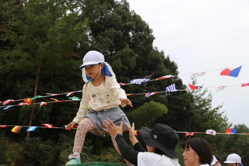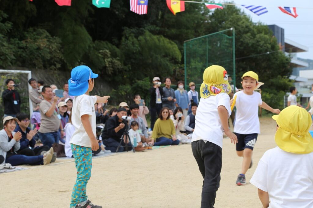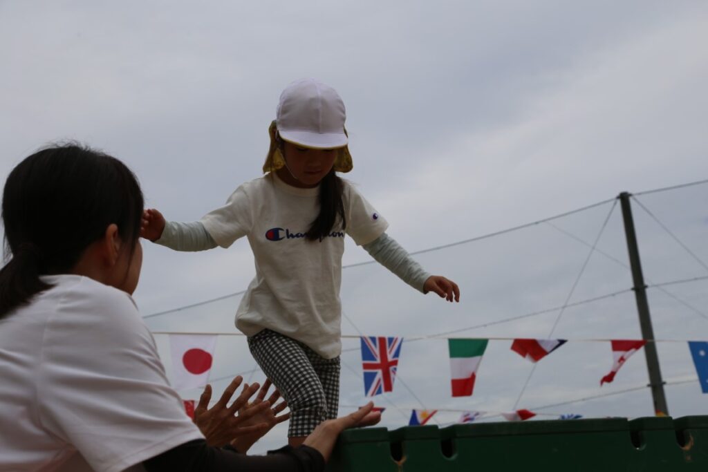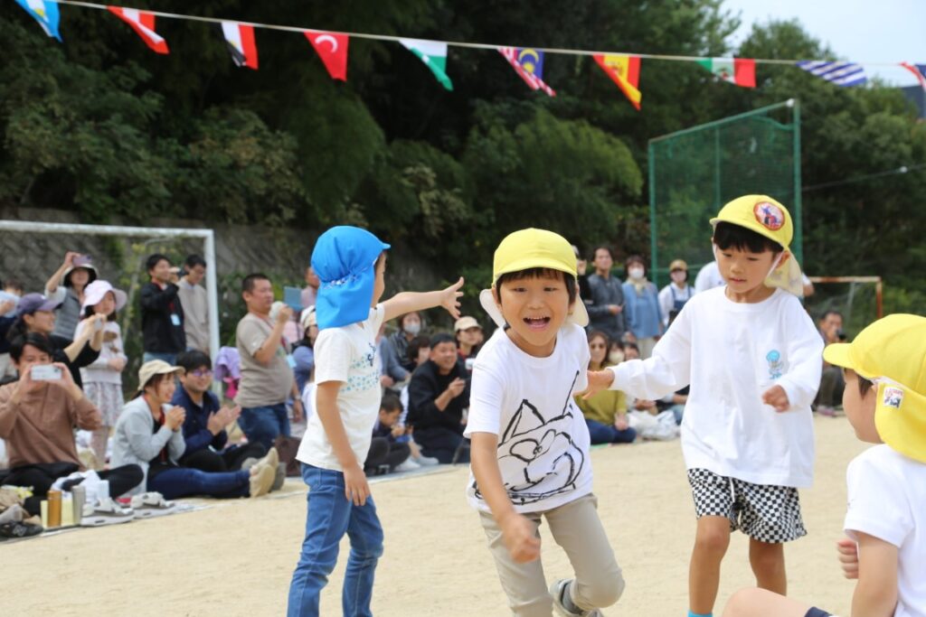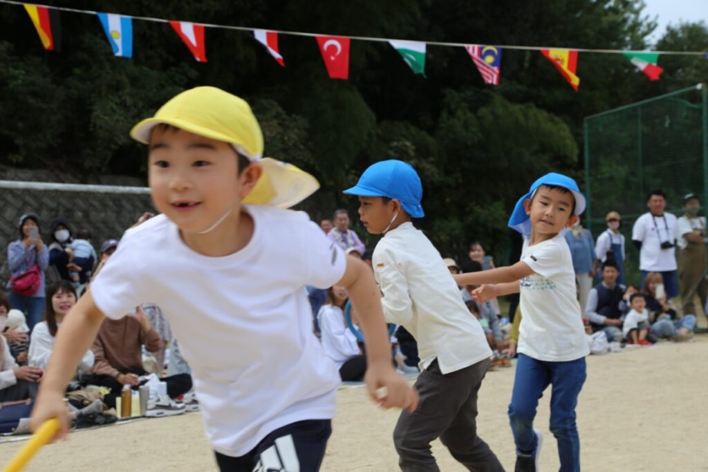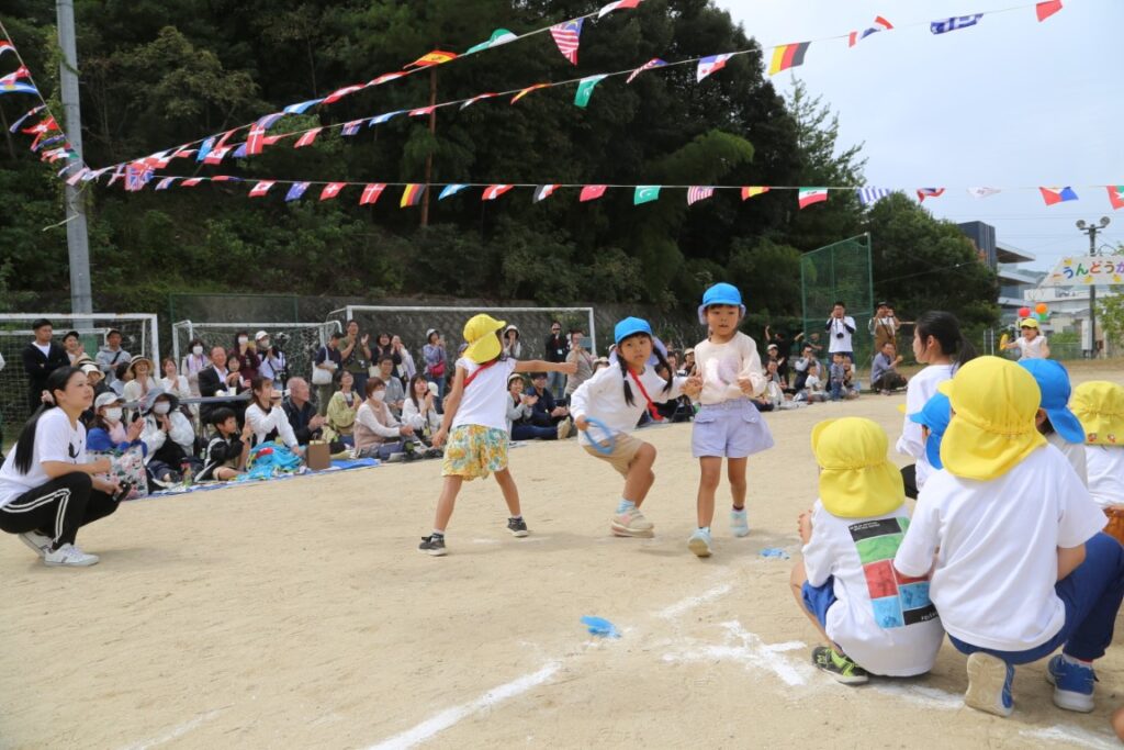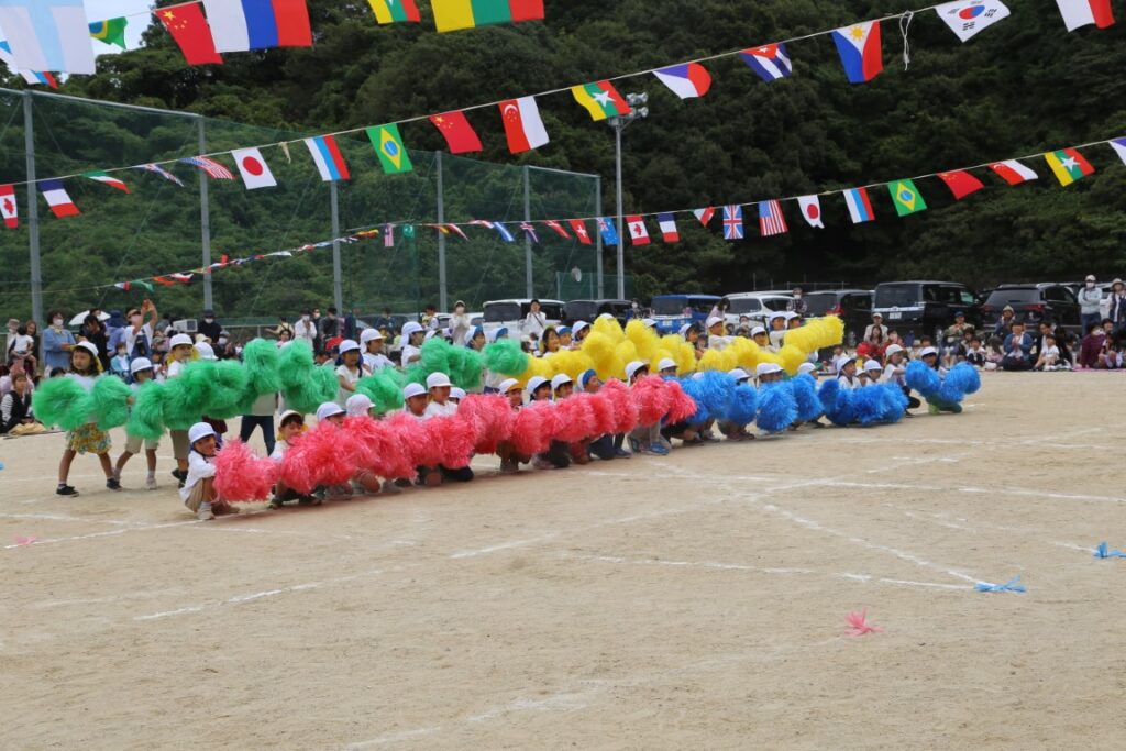 2023.10.13 年中 年少 年長 行事 秋の運動会② 2023年10月 運動会の様子の後半です!! ⑨『48人のチャレンジャー』 ひとりひとり自分の力を発揮!! まずは、長縄くぐり 鉄棒や巧技台にチャレンジ!! 次は、ポンポンで 「こころをひとつ」に!! ⑩『リレー』年長組 競技が全て終了し、閉会式です! 一人ひとりが力を発揮した運動会 皆様、たくさんの温かいご声援 本当にありがとうございました。 一覧に戻る