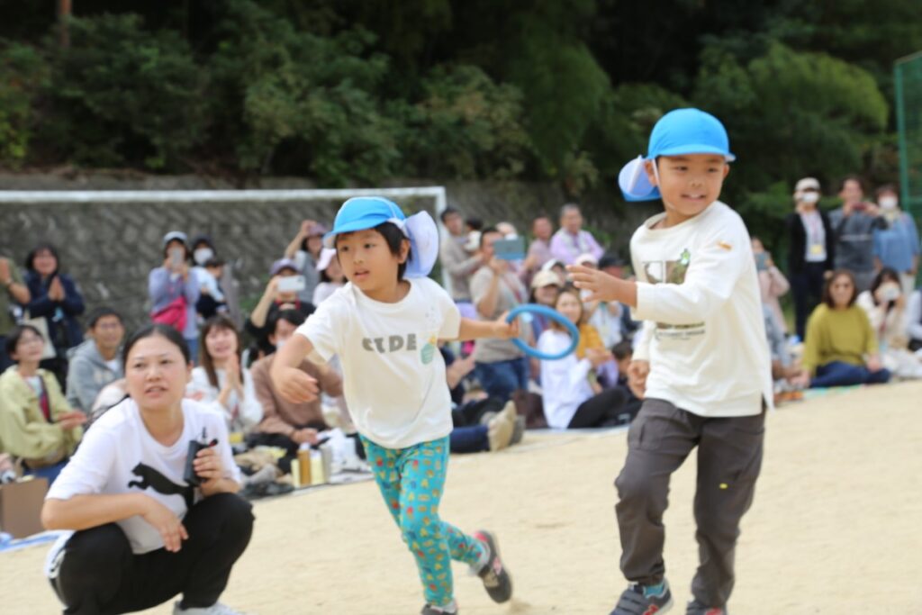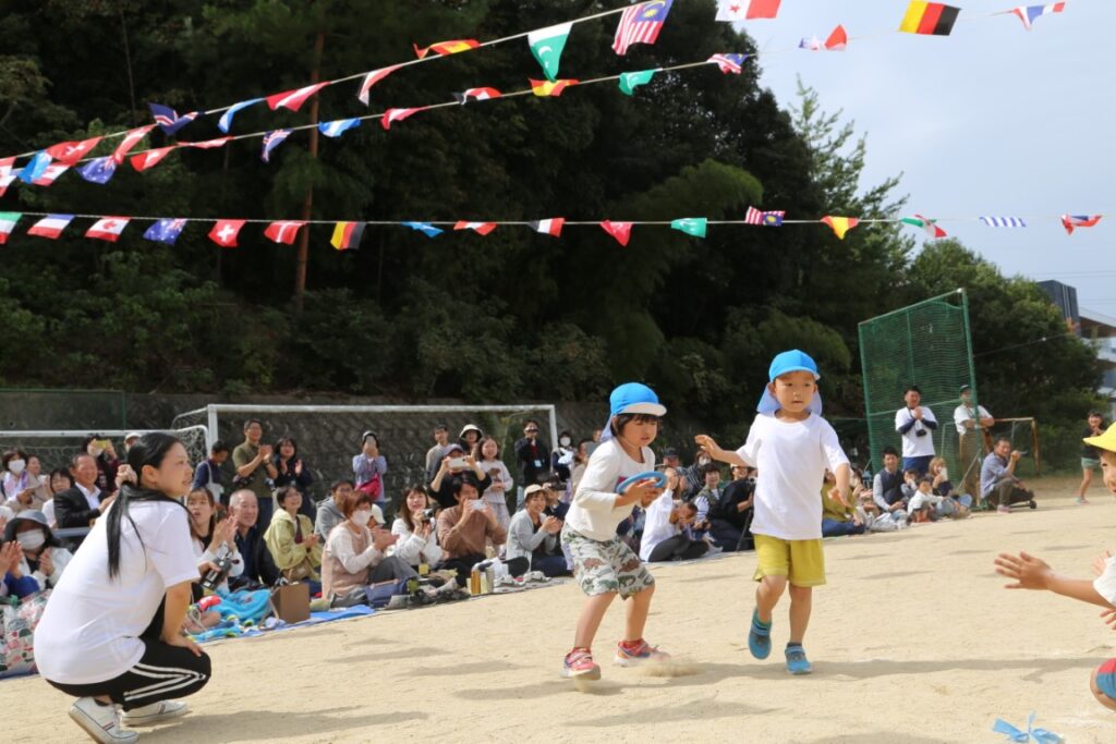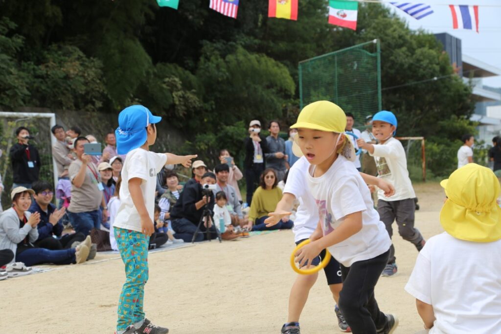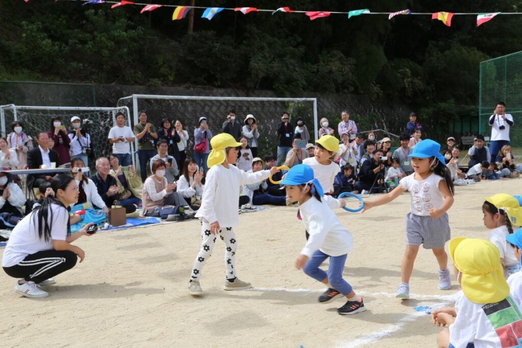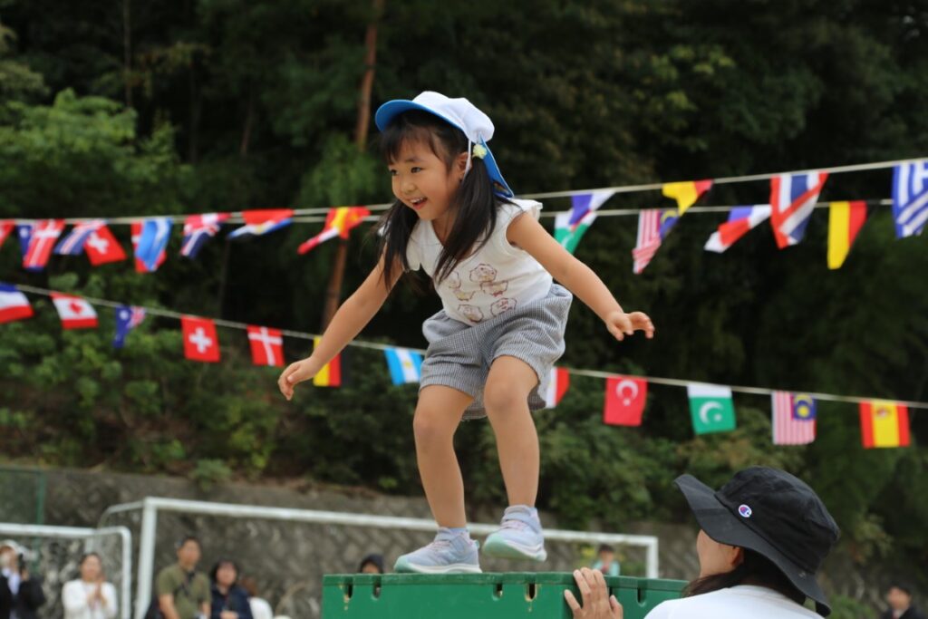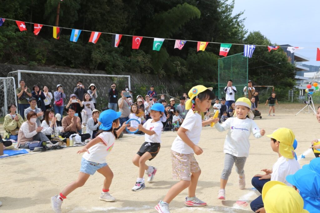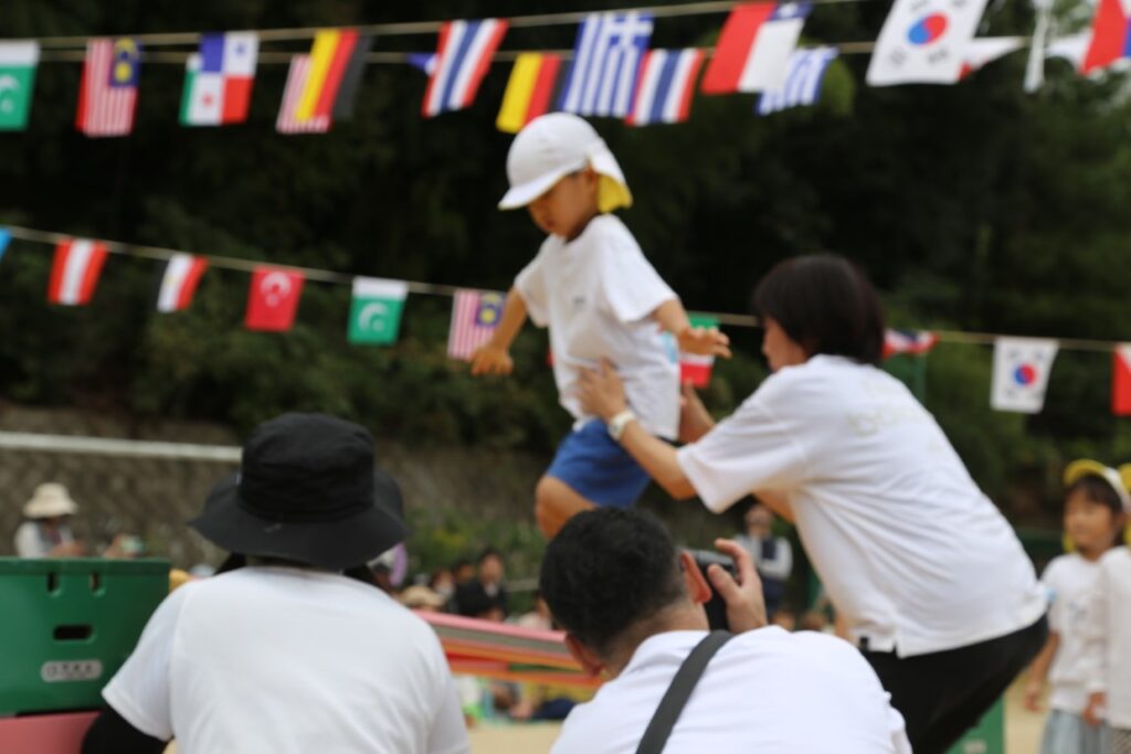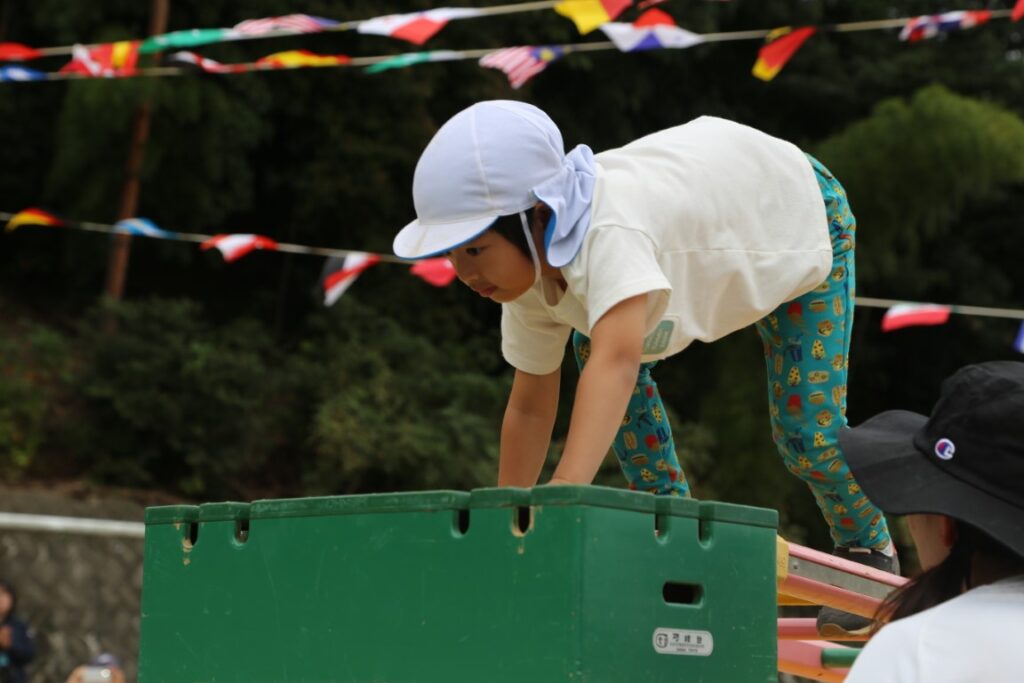 2023.10.13 年中 年少 年長 行事 秋の運動会② 2023年10月 運動会の様子の後半です!! ⑨『48人のチャレンジャー』 ひとりひとり自分の力を発揮!! まずは、長縄くぐり 鉄棒や巧技台にチャレンジ!! 次は、ポンポンで 「こころをひとつ」に!! ⑩『リレー』年長組 競技が全て終了し、閉会式です! 一人ひとりが力を発揮した運動会 皆様、たくさんの温かいご声援 本当にありがとうございました。 一覧に戻る