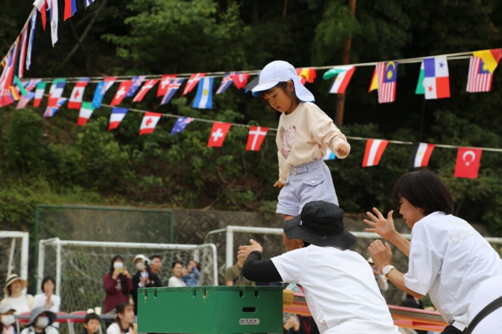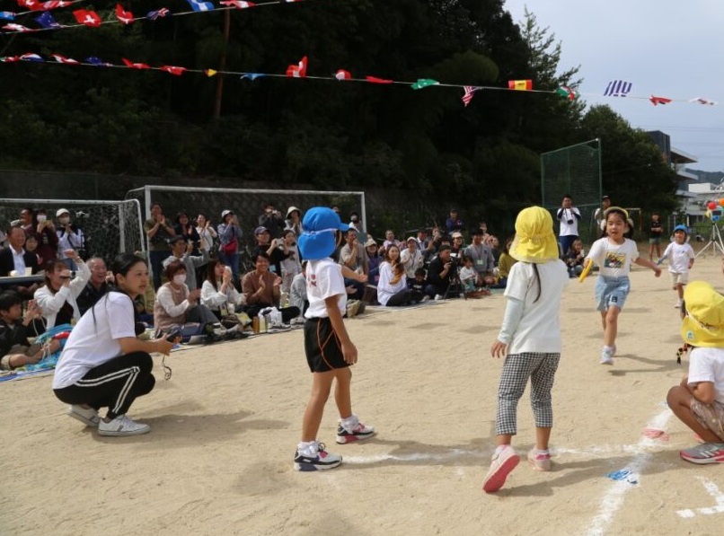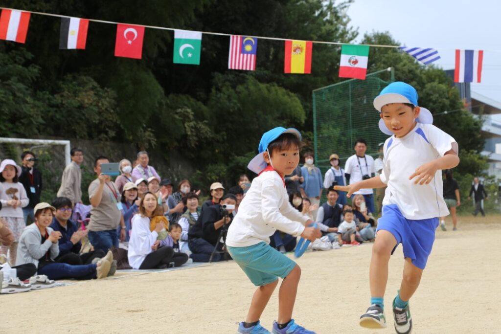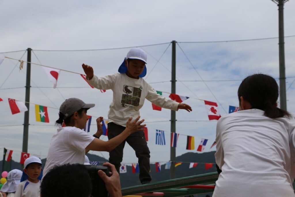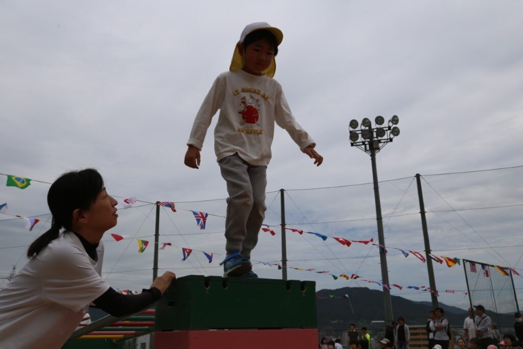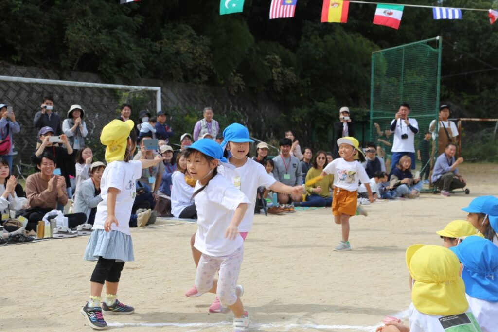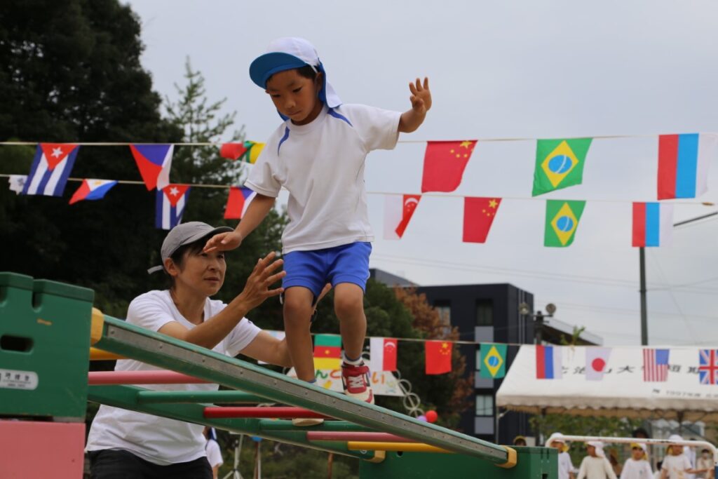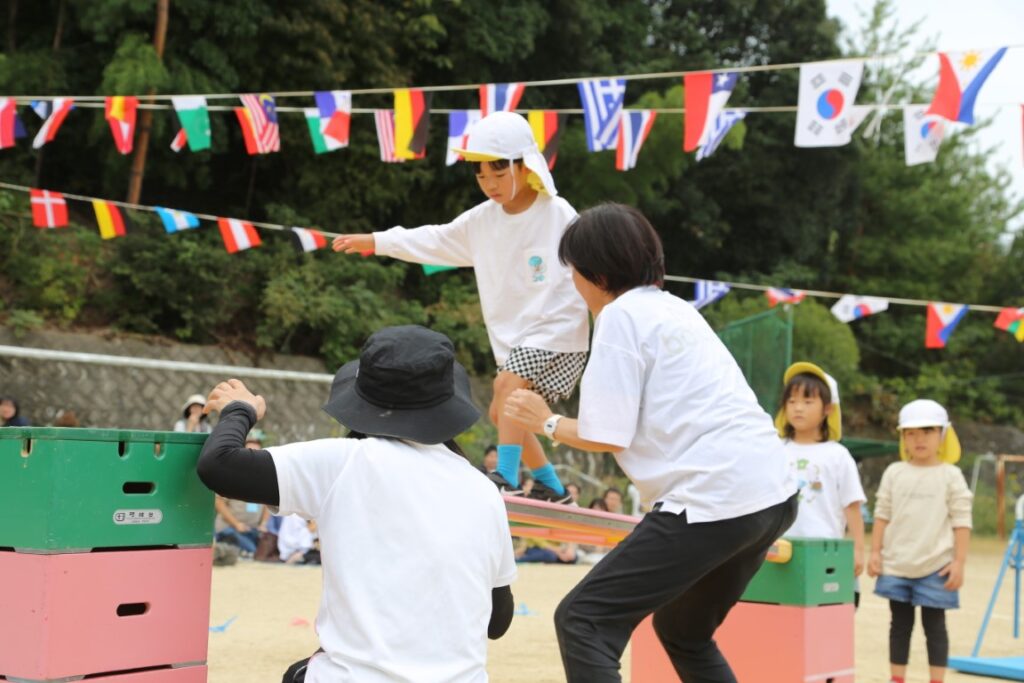 2023.10.13 年中 年少 年長 行事 秋の運動会② 2023年10月 運動会の様子の後半です!! ⑨『48人のチャレンジャー』 ひとりひとり自分の力を発揮!! まずは、長縄くぐり 鉄棒や巧技台にチャレンジ!! 次は、ポンポンで 「こころをひとつ」に!! ⑩『リレー』年長組 競技が全て終了し、閉会式です! 一人ひとりが力を発揮した運動会 皆様、たくさんの温かいご声援 本当にありがとうございました。 一覧に戻る
