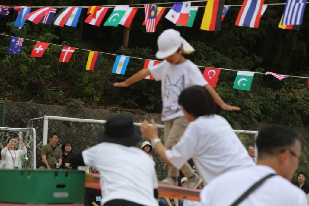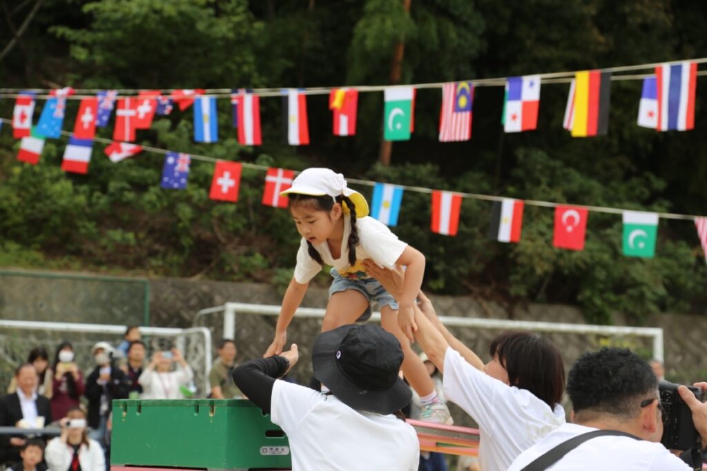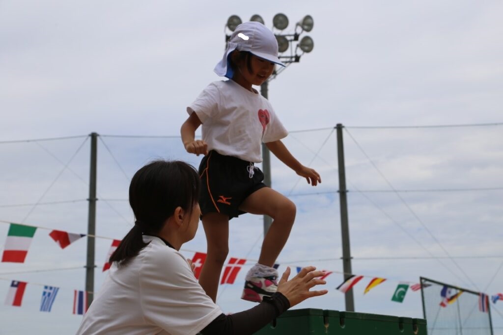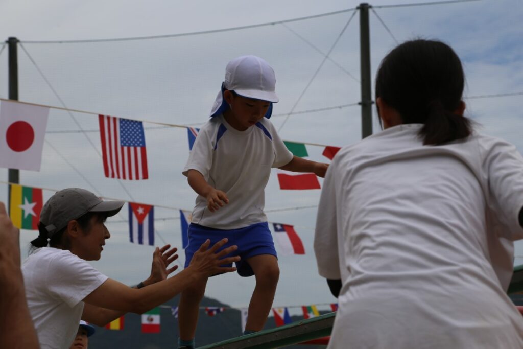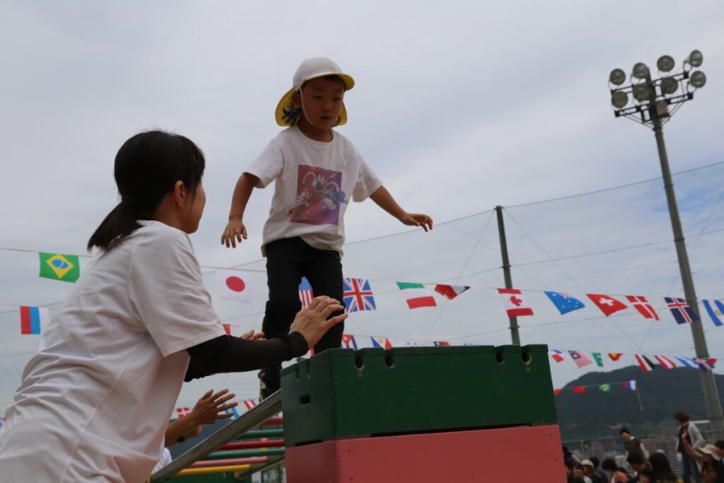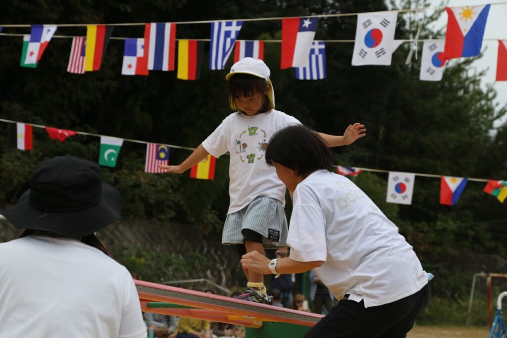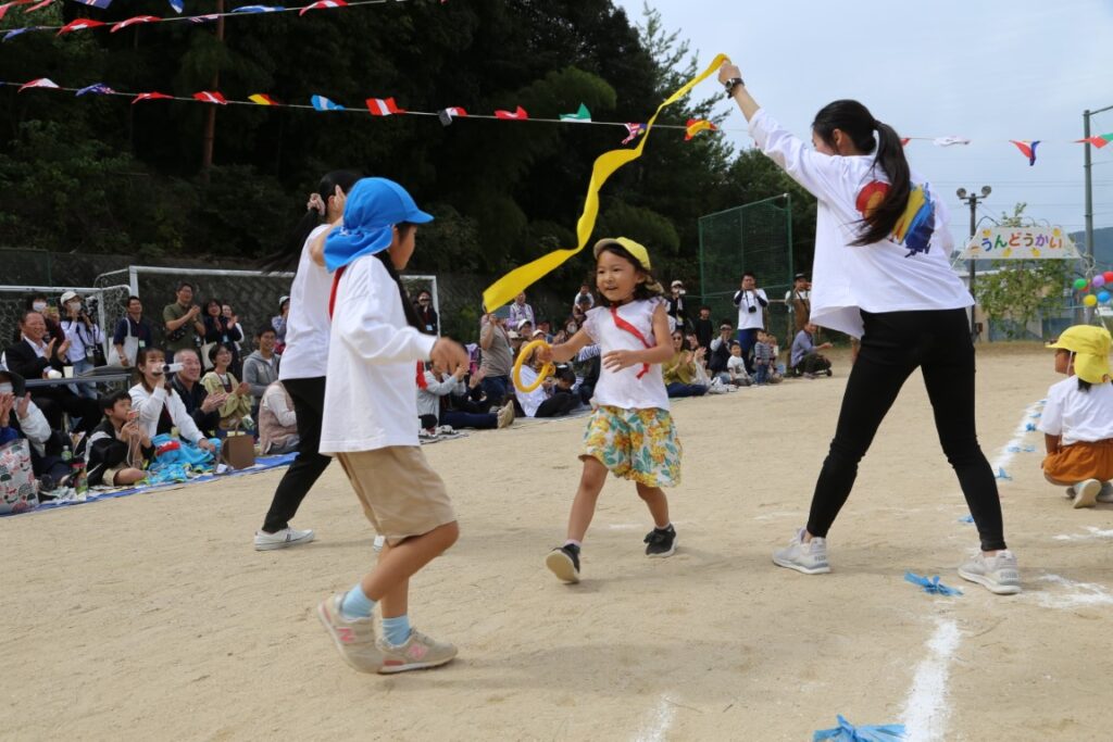 2023.10.13 年中 年少 年長 行事 秋の運動会② 2023年10月 運動会の様子の後半です!! ⑨『48人のチャレンジャー』 ひとりひとり自分の力を発揮!! まずは、長縄くぐり 鉄棒や巧技台にチャレンジ!! 次は、ポンポンで 「こころをひとつ」に!! ⑩『リレー』年長組 競技が全て終了し、閉会式です! 一人ひとりが力を発揮した運動会 皆様、たくさんの温かいご声援 本当にありがとうございました。 一覧に戻る