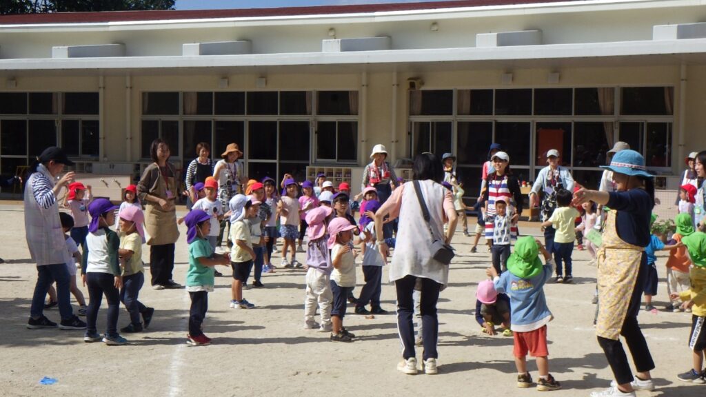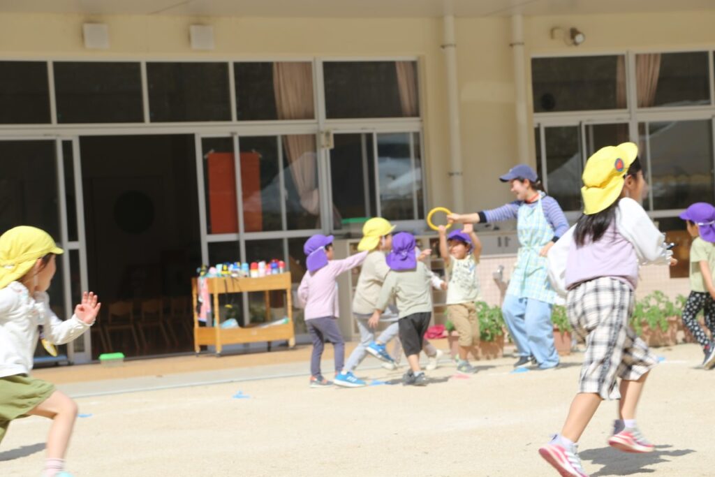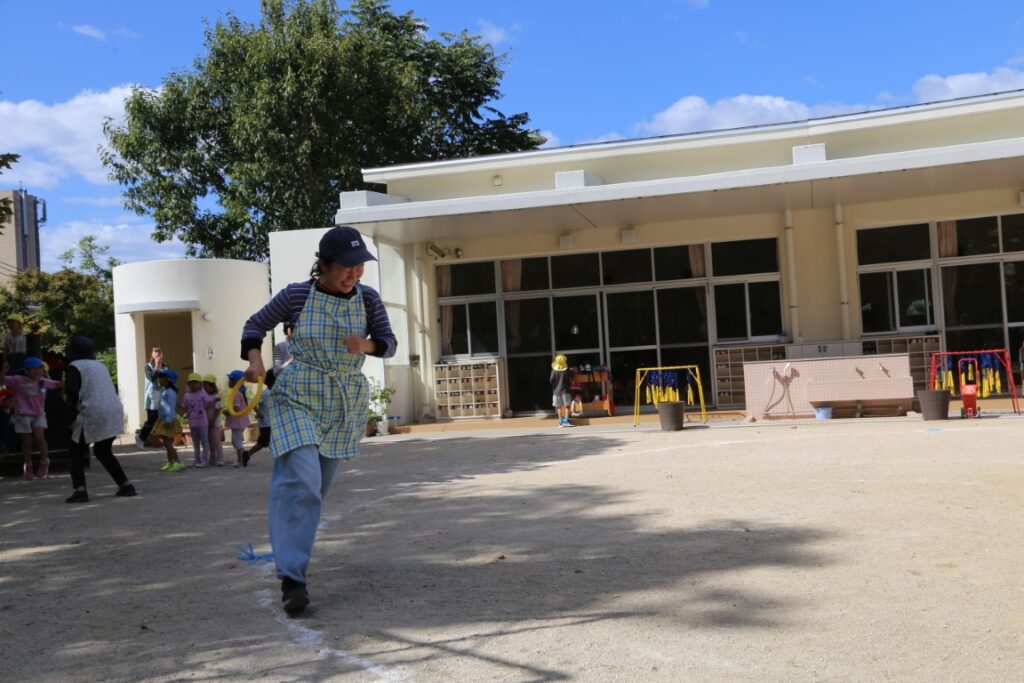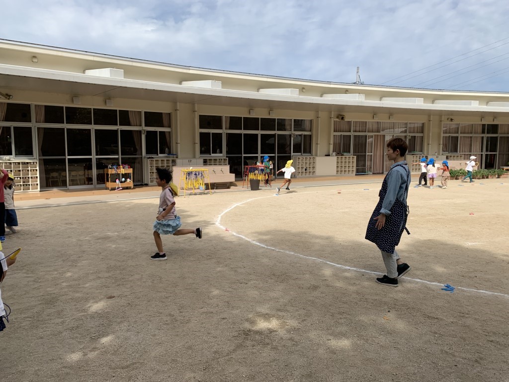 子どもたちと一緒に運動会ごっこに