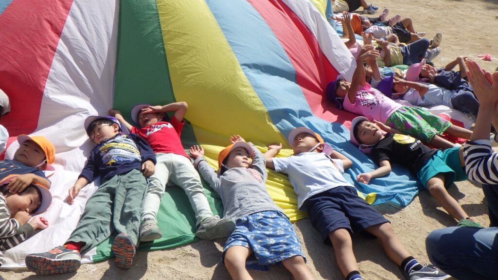 保護者の方も運動遊びにチャレンジしたり