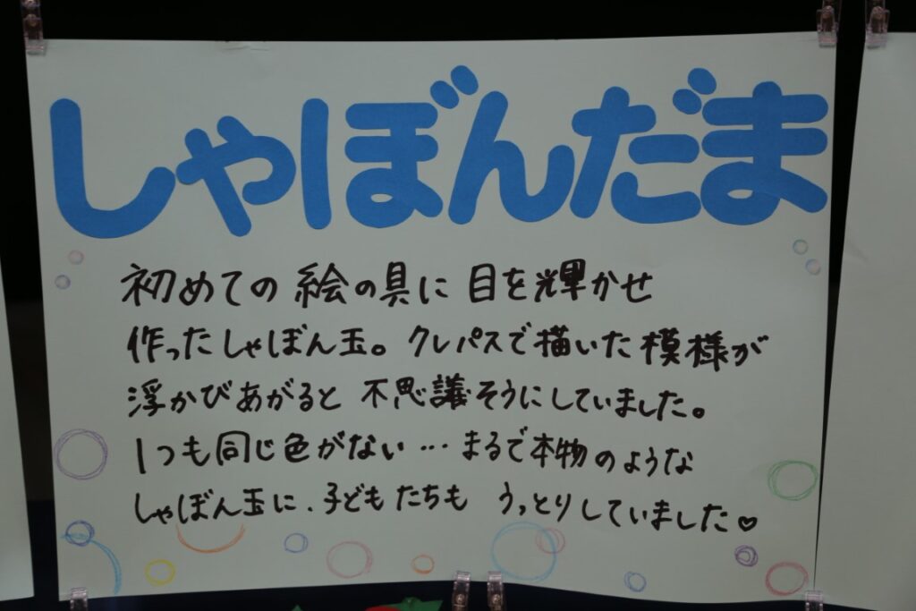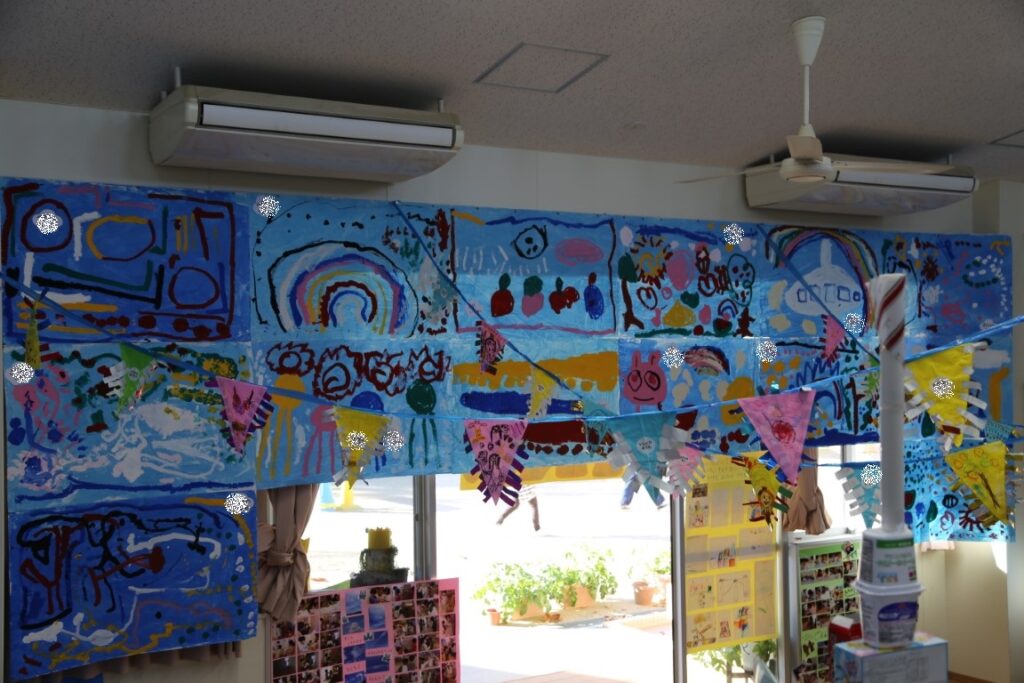 大きな模造紙にのびのびと描きました。