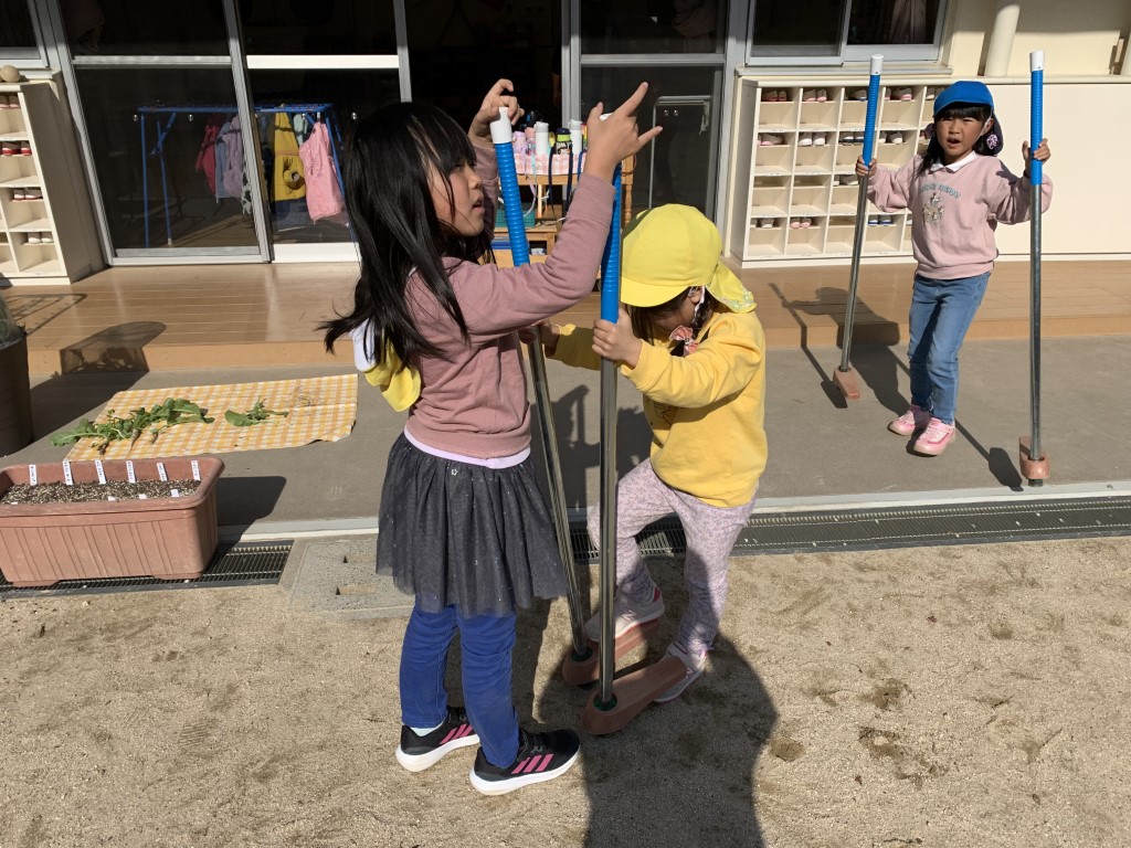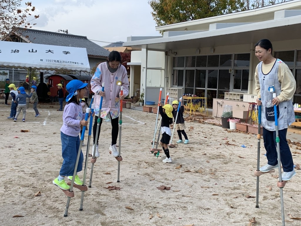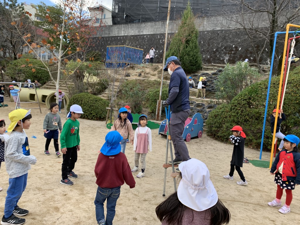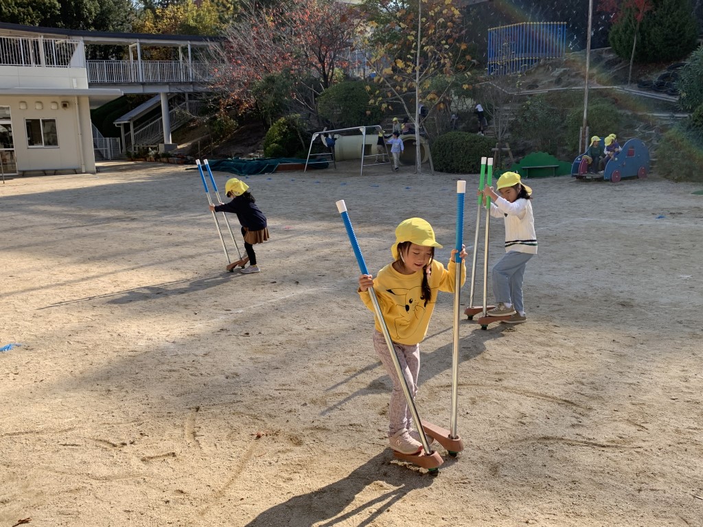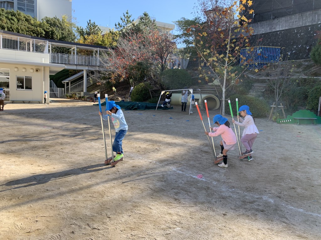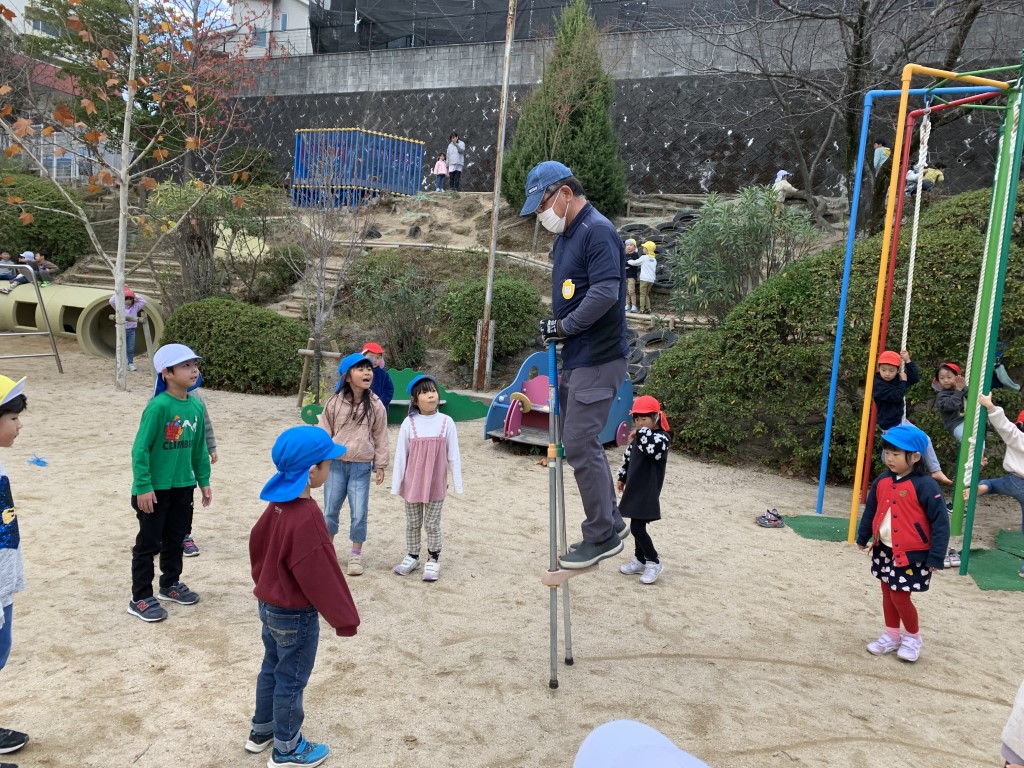2023.11.30 年長 サーカス?! 2023年11月 子どもたちは、日々 幼稚園で いろいろなことにチャレンジしています! 年長さんを中心に、繰り返し竹馬に 挑戦する姿がみられています。 体重を前にかけ、 バランスがとれる位置を探します。 日に日に竹馬遊びが盛り上がり、 連日、サーカス開催?! 早速、新しい団員の入団テストです! エース登場?! 大人の方が大盛り上がり?(笑) 新入団の方にポイントを教わり、 繰り返し挑戦する姿も! ひじやま 竹馬 サーカス 団員募集中です♪ 一覧に戻る