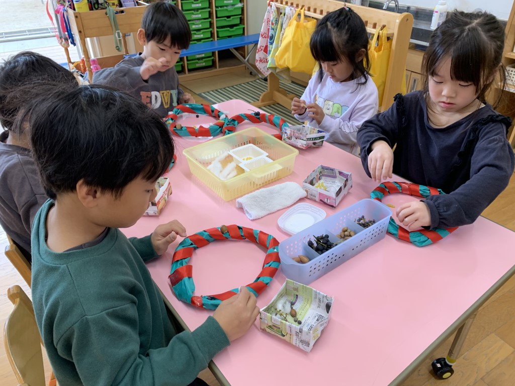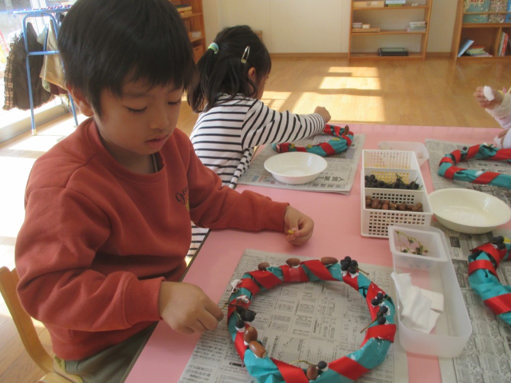 集めたどんぐり、シャリンバイ、ねずみもちを