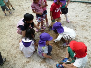 「この砂は、いい泥だんごが出来るかなぁ??」