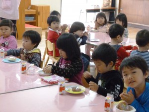 年少さんは、入園当初、楽しいおやつの時間がありました。