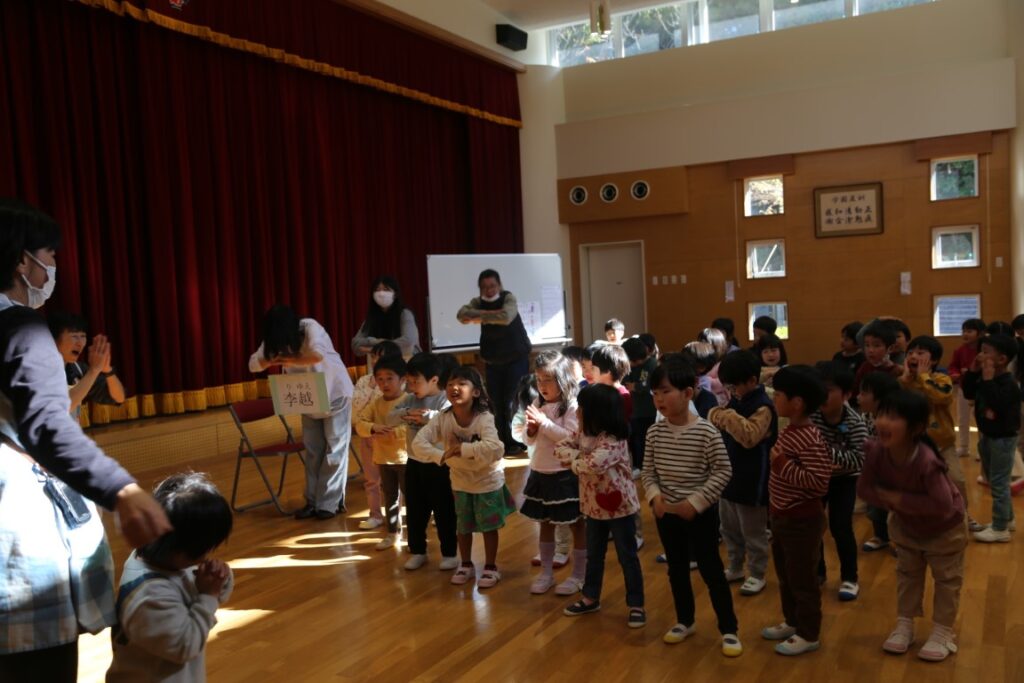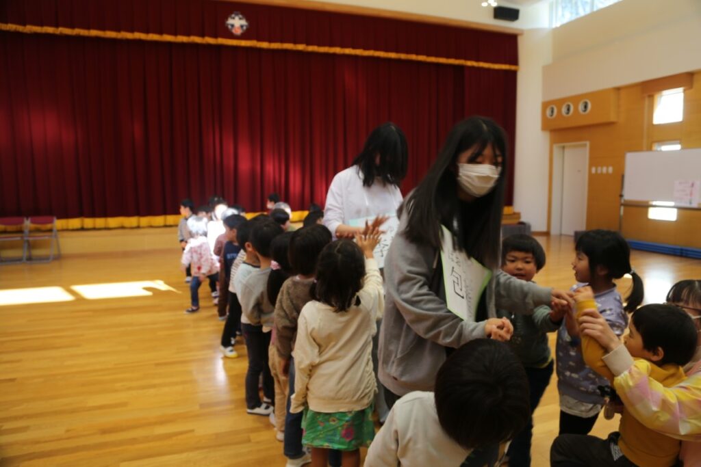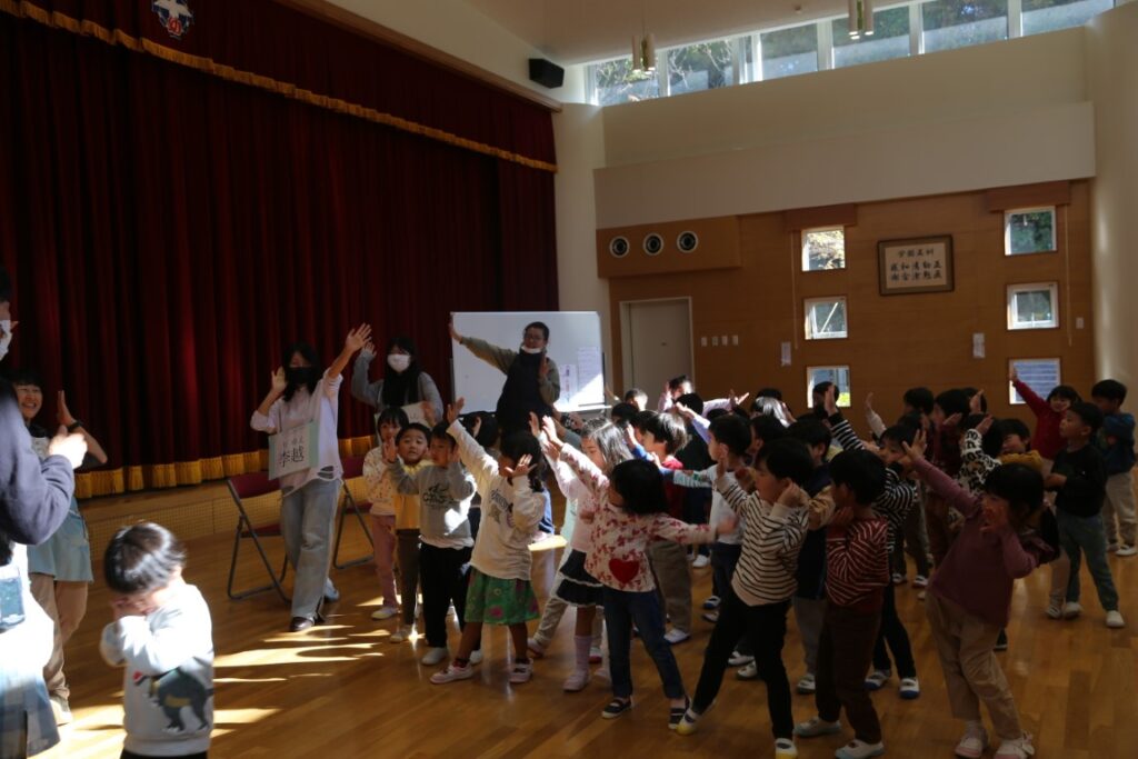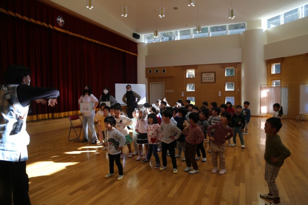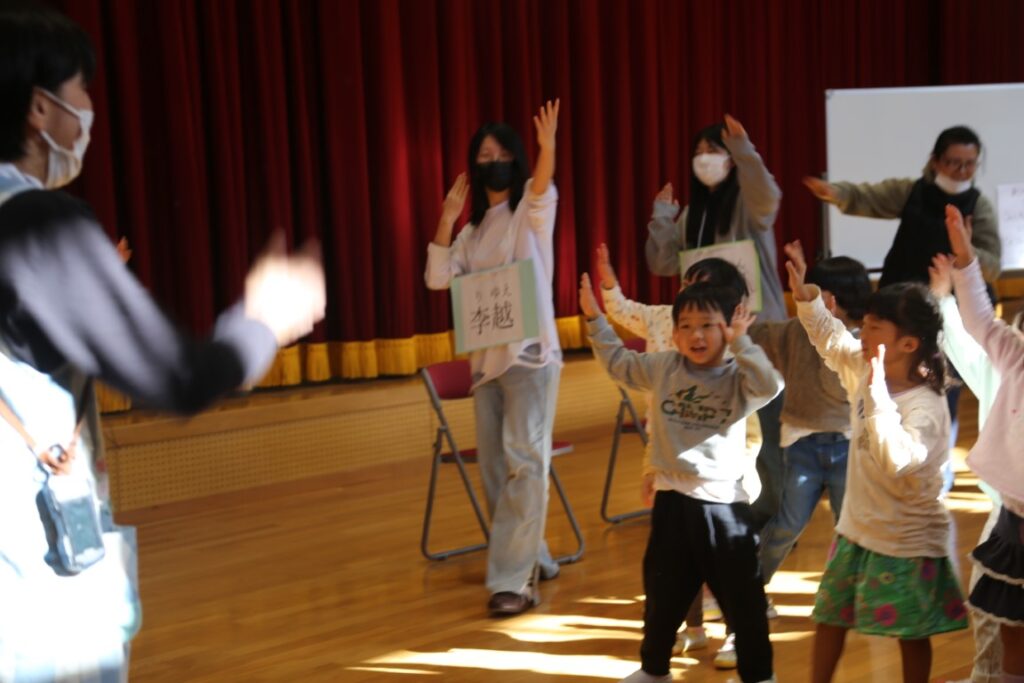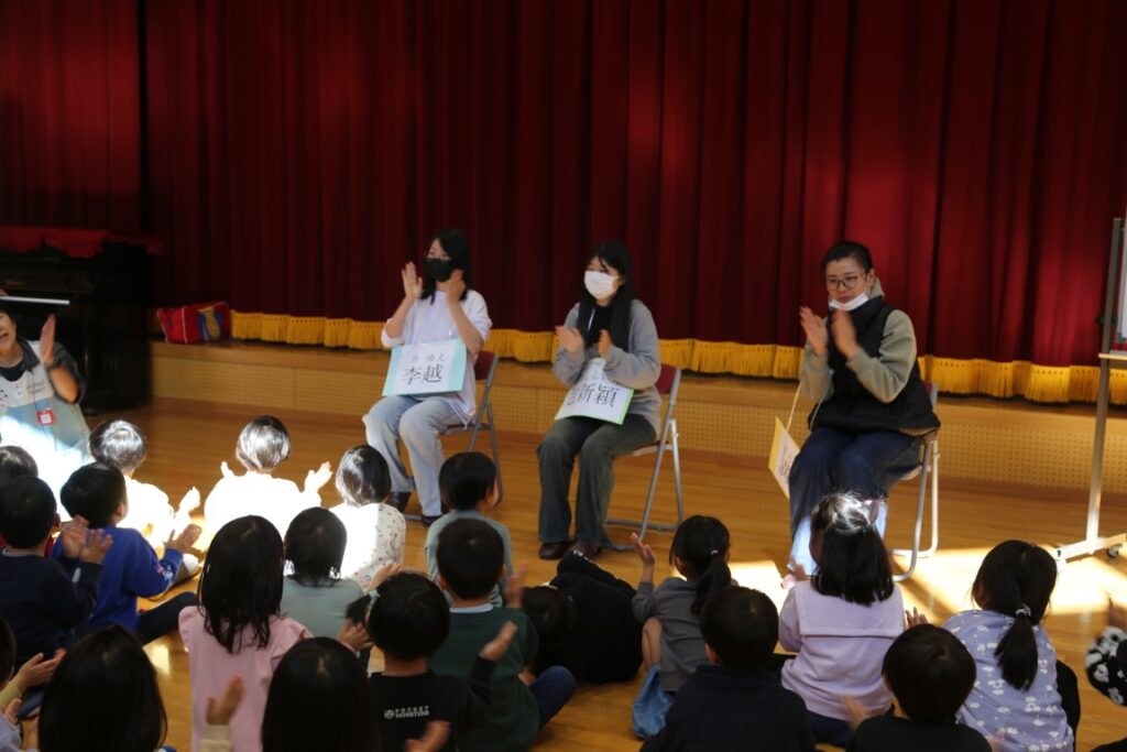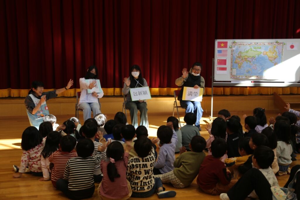 年中さんは、中国からの大学生が幼稚園に