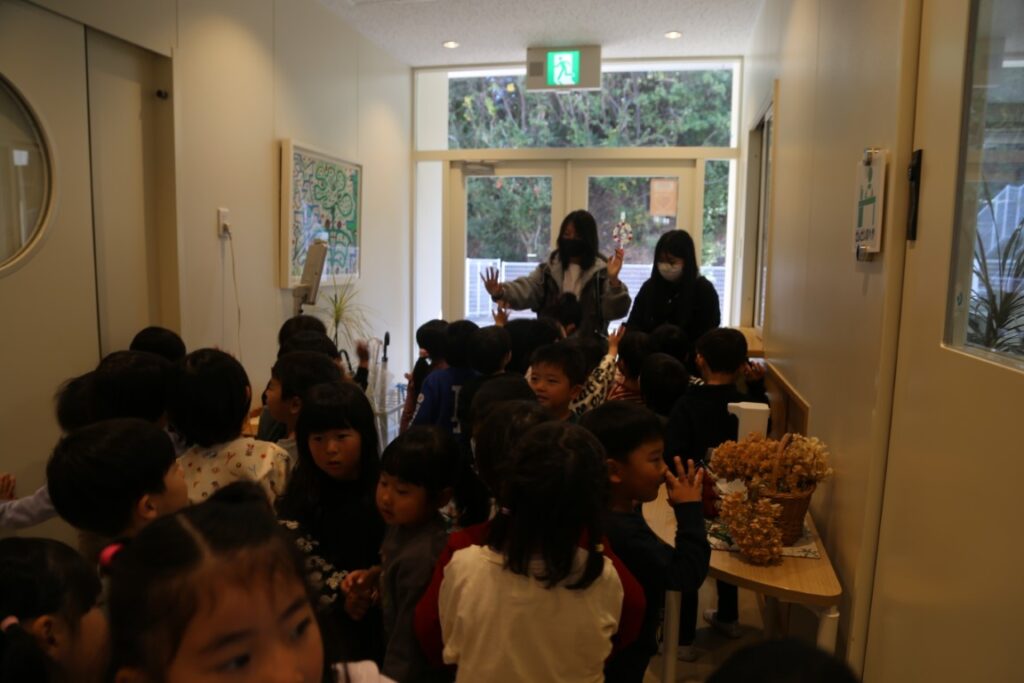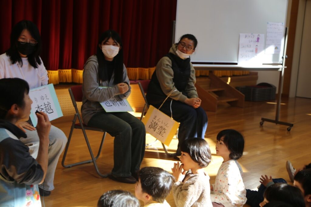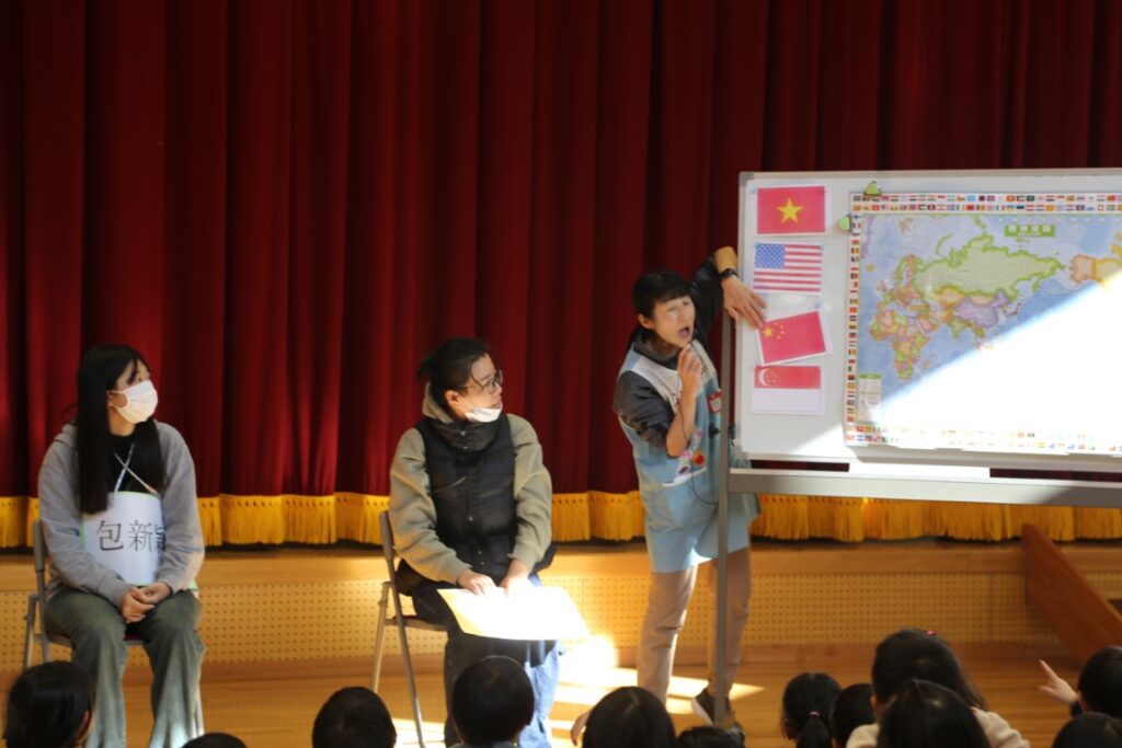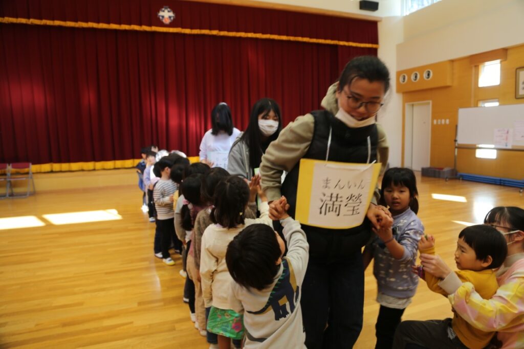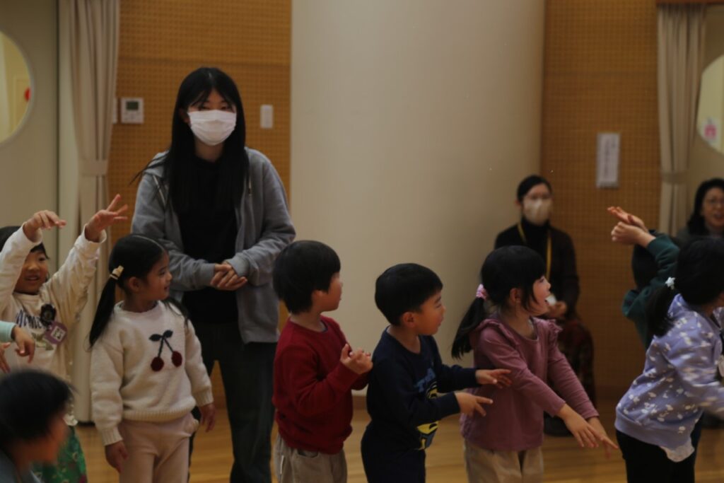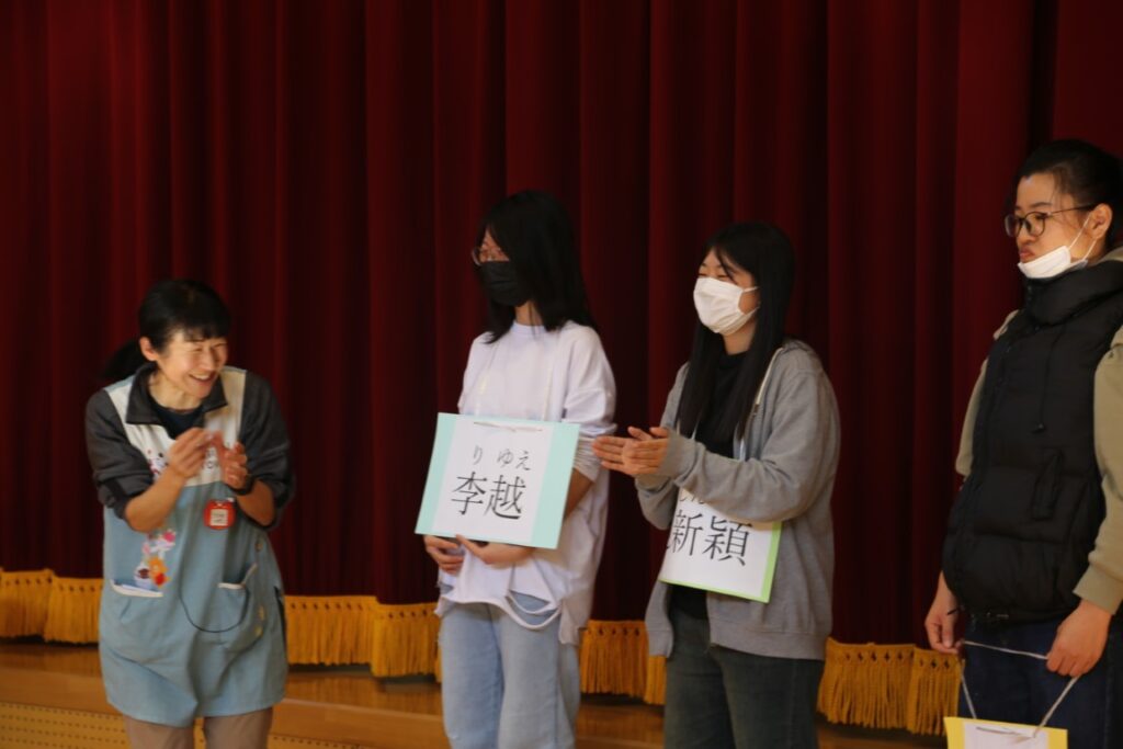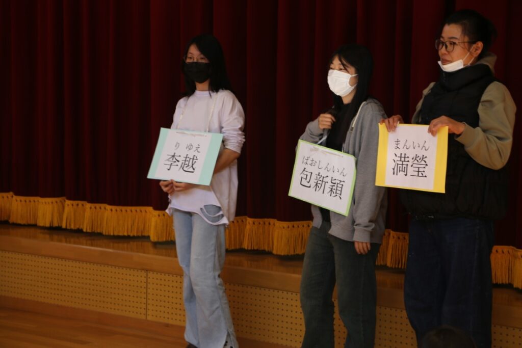 年中さんは、中国からの大学生が幼稚園に