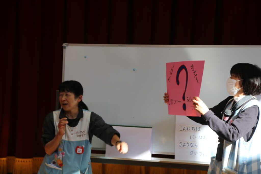 中国の挨拶の言葉などを、事前に調べていた年中さん。