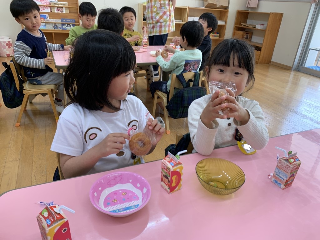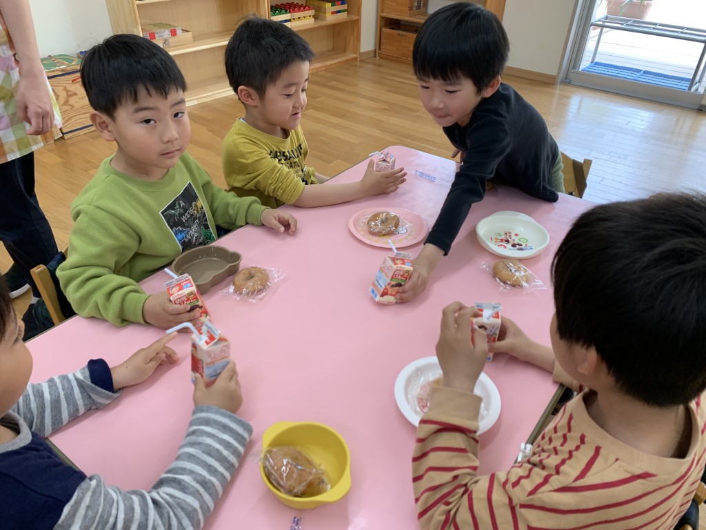 年長さんは年中さんにおやつをお届け!