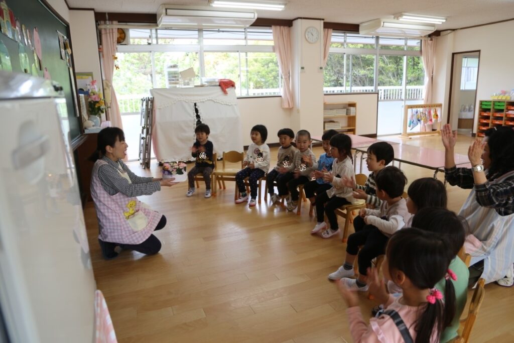 2024.05.01 年少 行事 にこにこ会②(年少) 2024年5月 創立記念日お祝いを、 年少組は、お部屋でしました♪ 幼稚園さんのお誕生日のパネルシアターをみんなで見て、 ケーキでお祝い!おめでとう~♡ 年少さんもお祝いのおやつパーティー♪ 園生活が始まって数日の年少さんも にこにこな『にこにこ会』でした! 幼稚園さん おめでとう♡ 一覧に戻る
