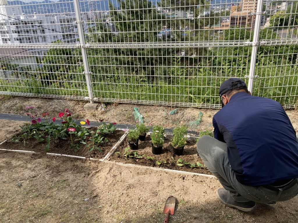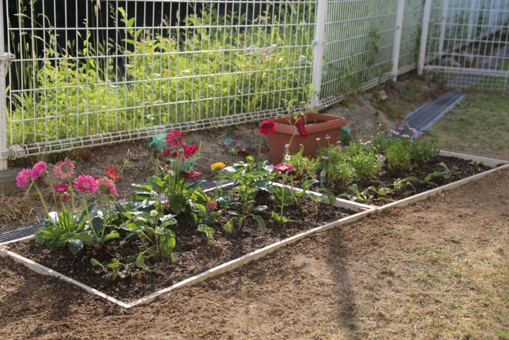 ある日、園舎北側に新たな花壇が…