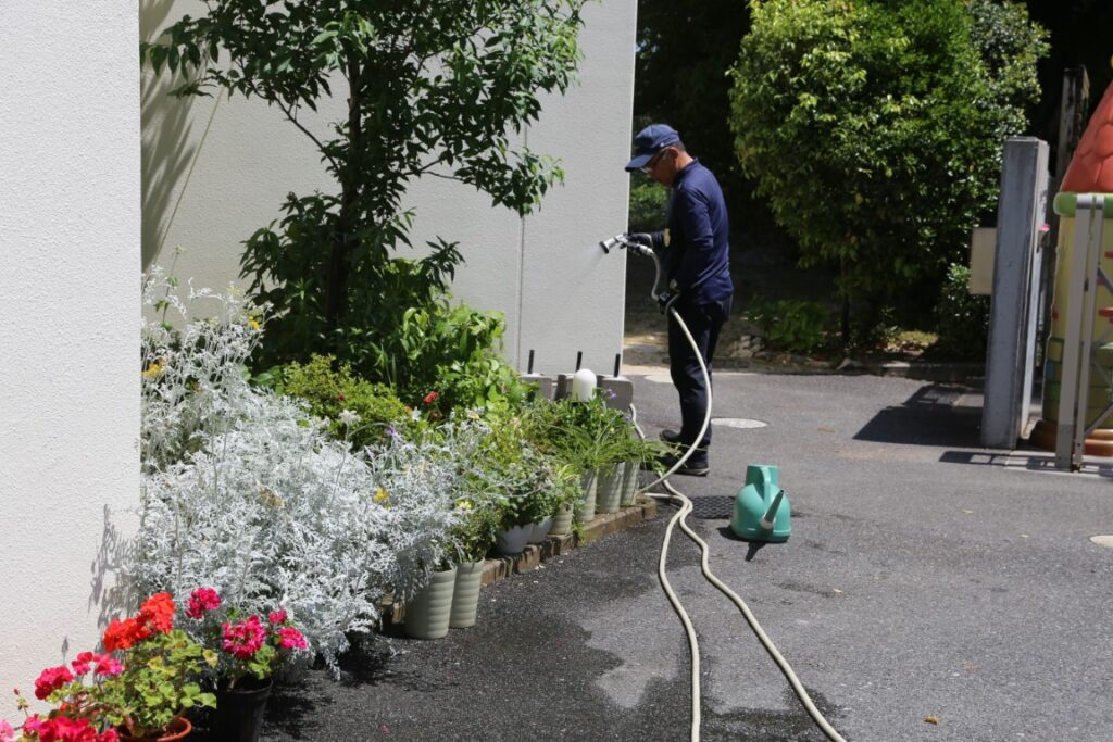 花壇の水やり、