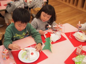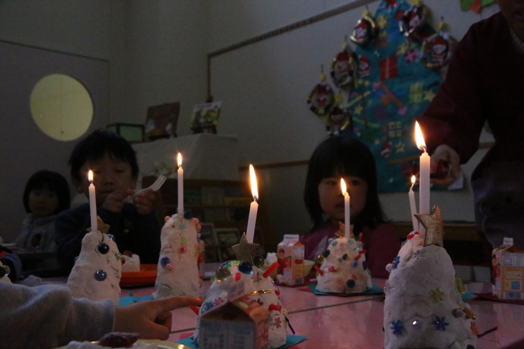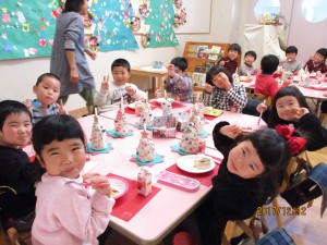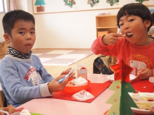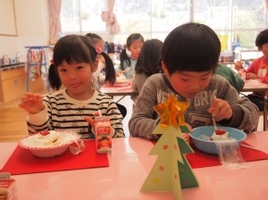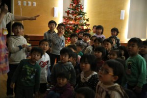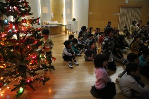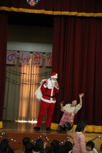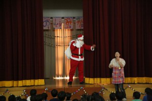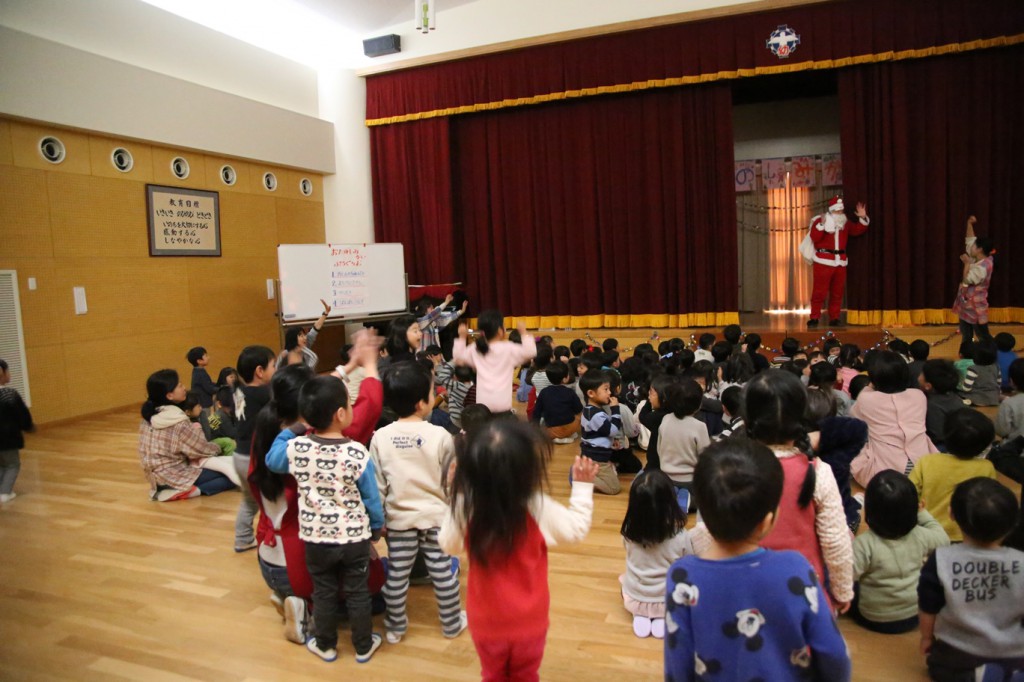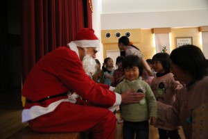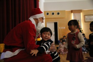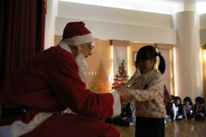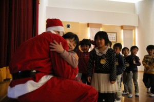 子どもたち、みんな一人ずつサンタさんにお礼を言ったり