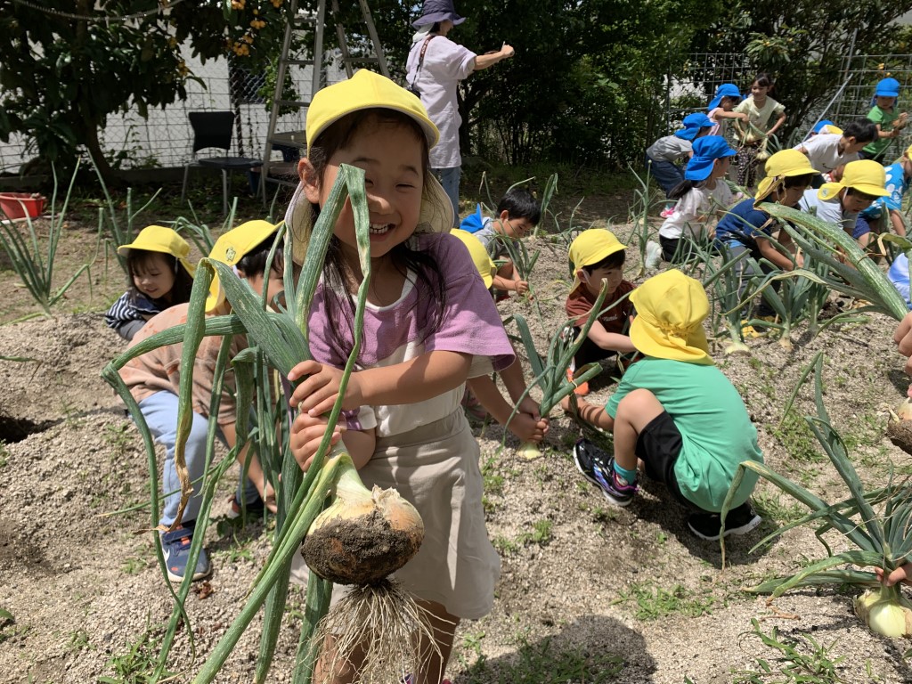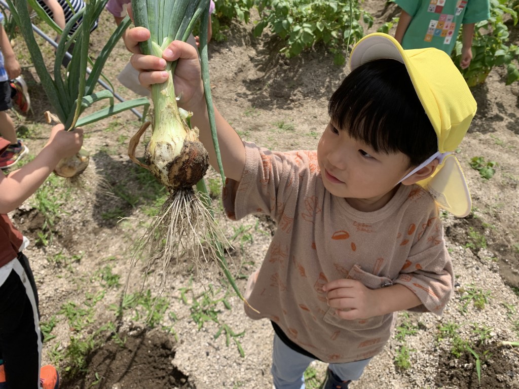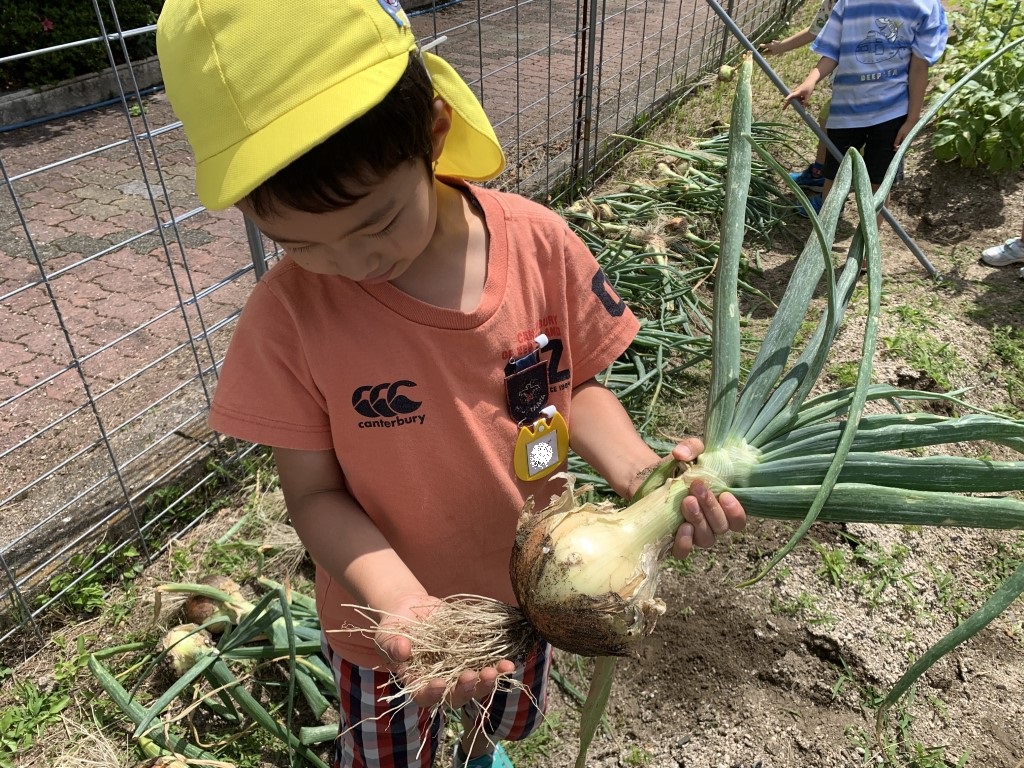 玉ねぎの収穫(年長)