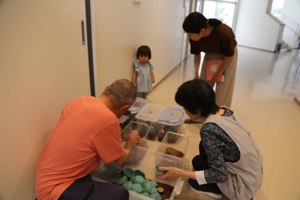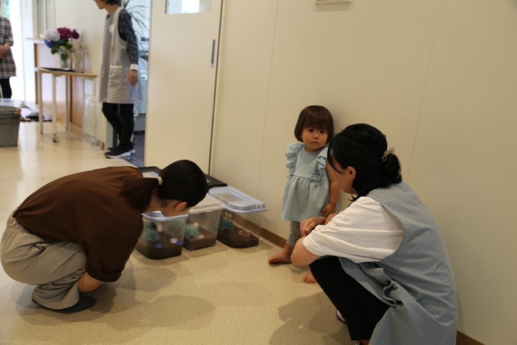 2024.06.27 全体 未就園児 すくすく日記(鈴虫おじさん来園) 2024年 6月 すくすく日記(2024.6.17~6.21.) 今週は、近所の鈴虫おじさんこと、応羽さんが、 幼稚園に鈴虫を持ってきてくれました。 ちょうど、すくすくのおともだちが通りかかりました。 たくさんの鈴虫を見る 子どもの表情、佇まい、 全てから『興味津々』があらわれているようです。 夏には、美しい鳴き声を聴かせてくれるでしょう。 一覧に戻る