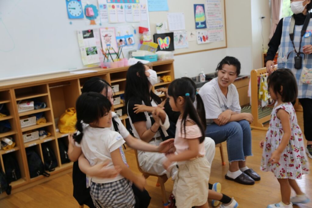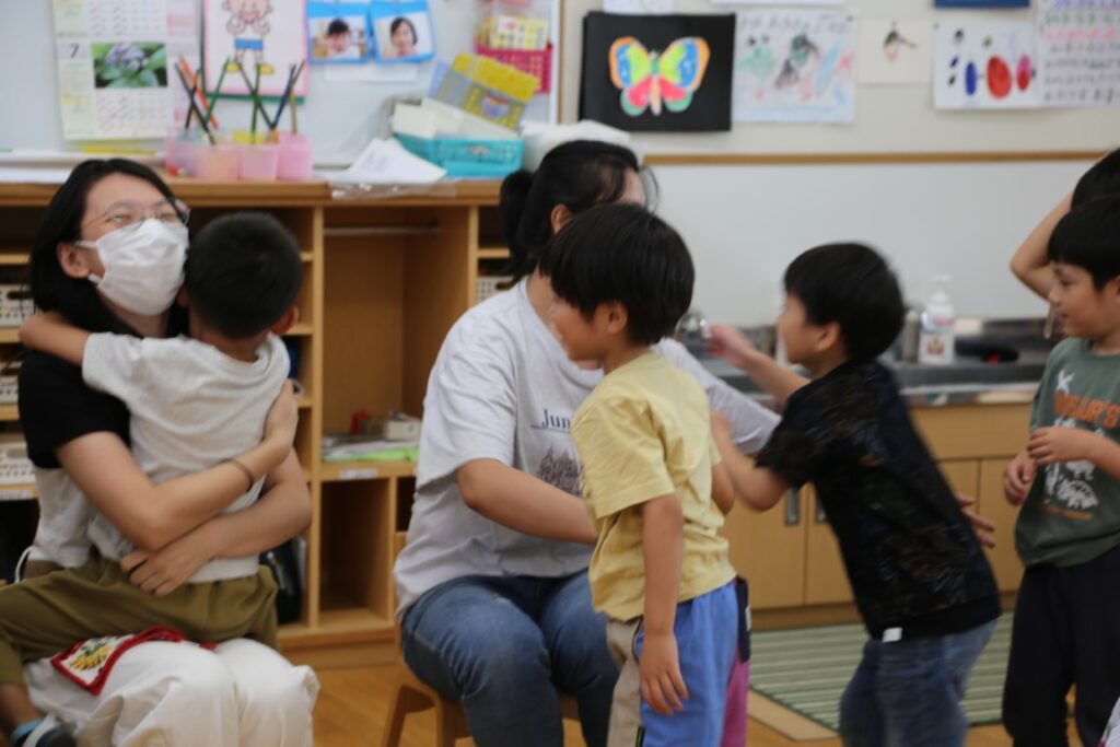 子ども同士で、友だちの背中に、形を描いていくよ…