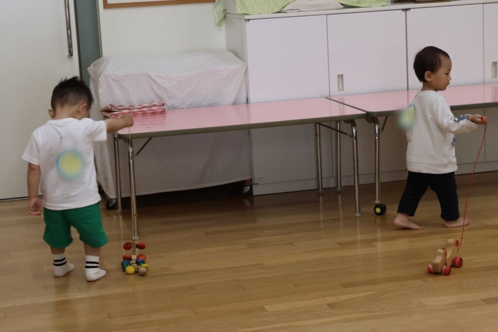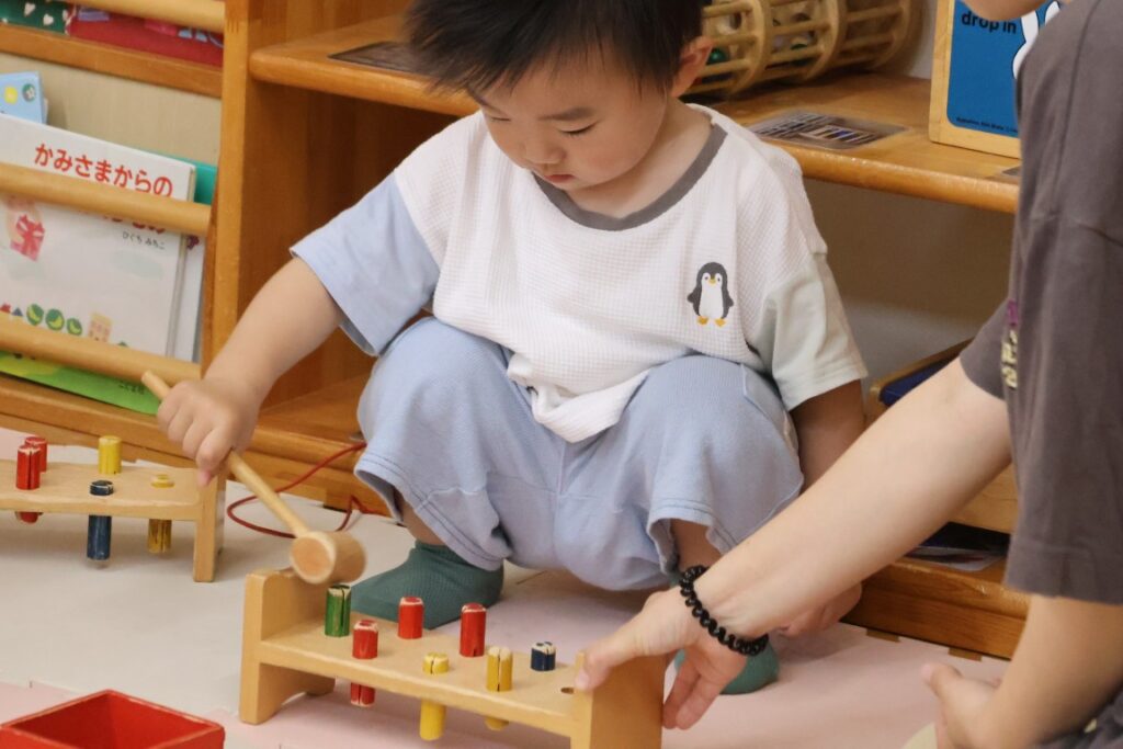 そして、Aくんの持つ木づちに手を伸ばしたBちゃん。