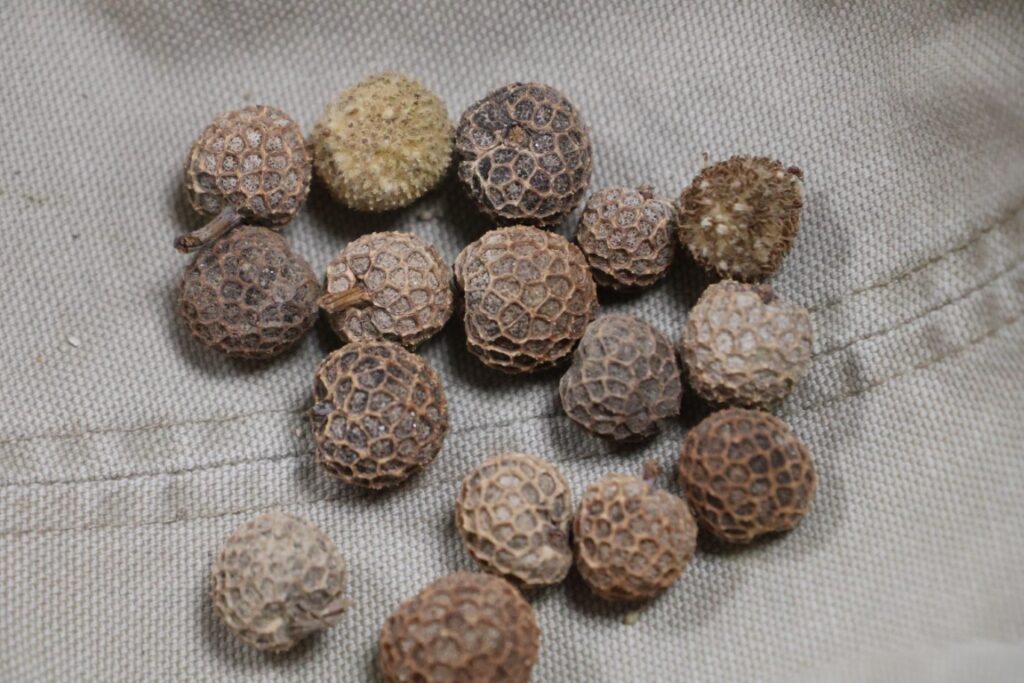 ケーキのトッピングに使おうと木の実を手にしていました。