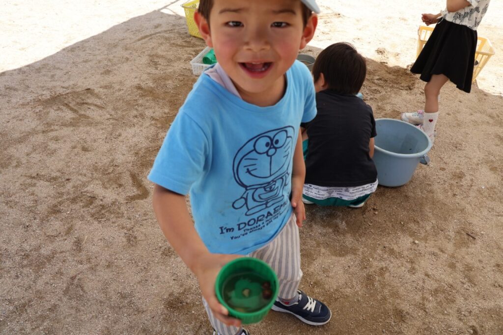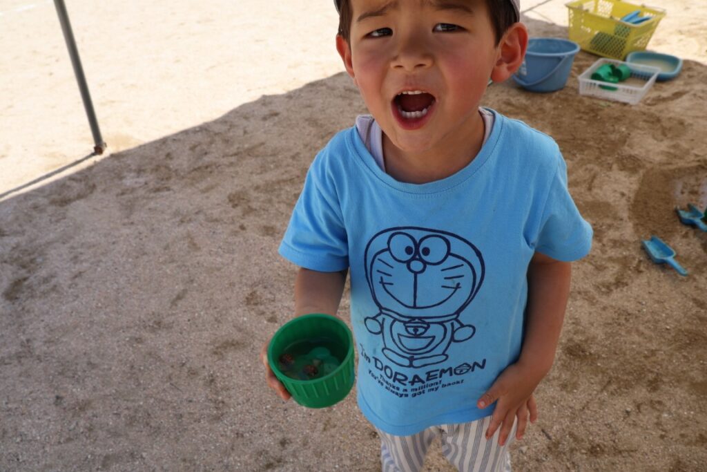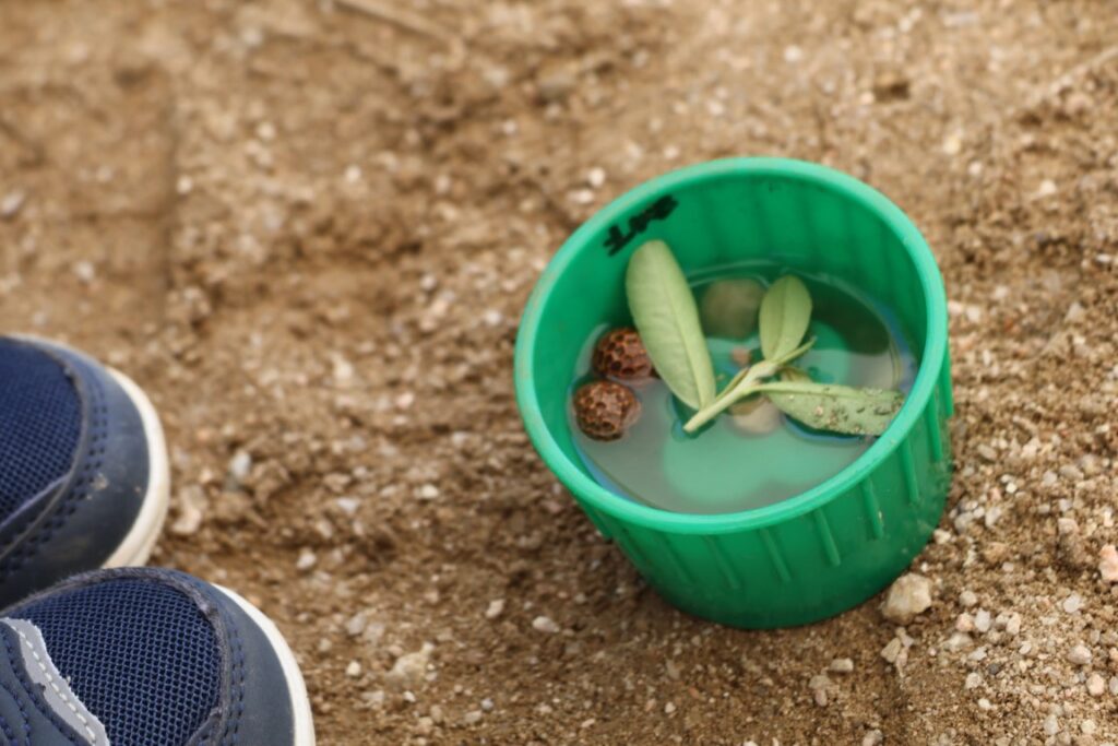 砂と水でカップケーキを作ろうとしていた年中のAくん。