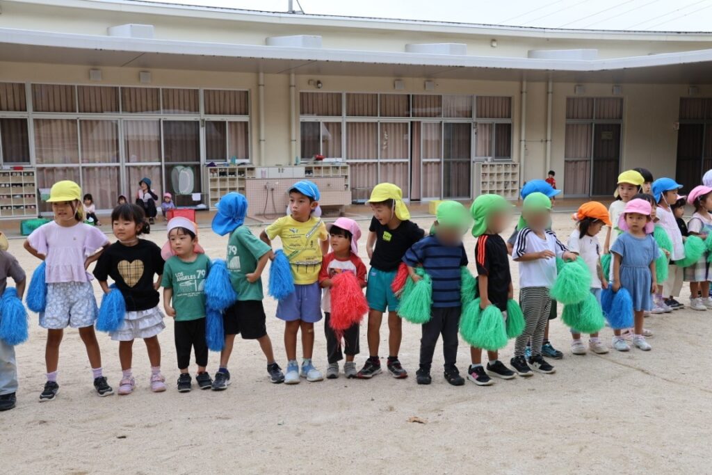 ポンポンや玉入れ、リレーをしました。
