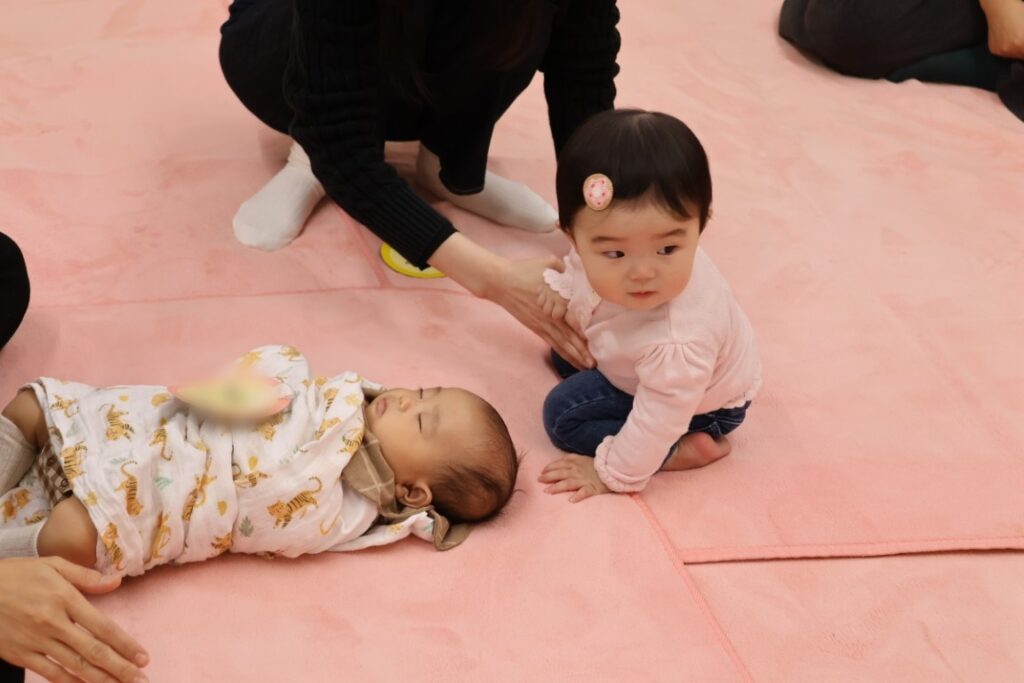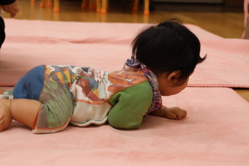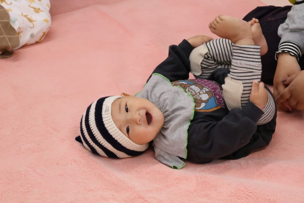 寝返りを打とうと頑張っている子がいたり、
