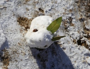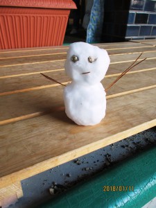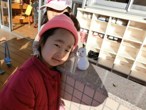 雪をかき集めて、雪だるまや雪うさぎを作りました。