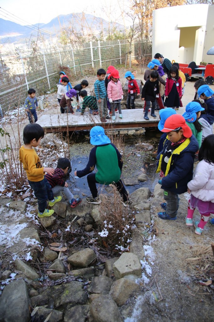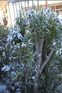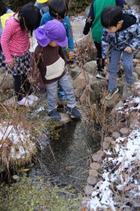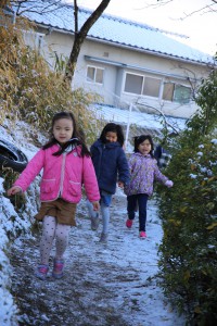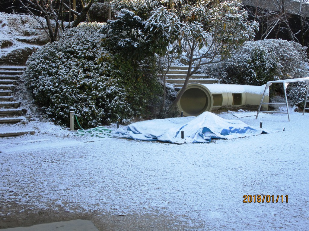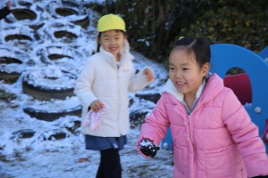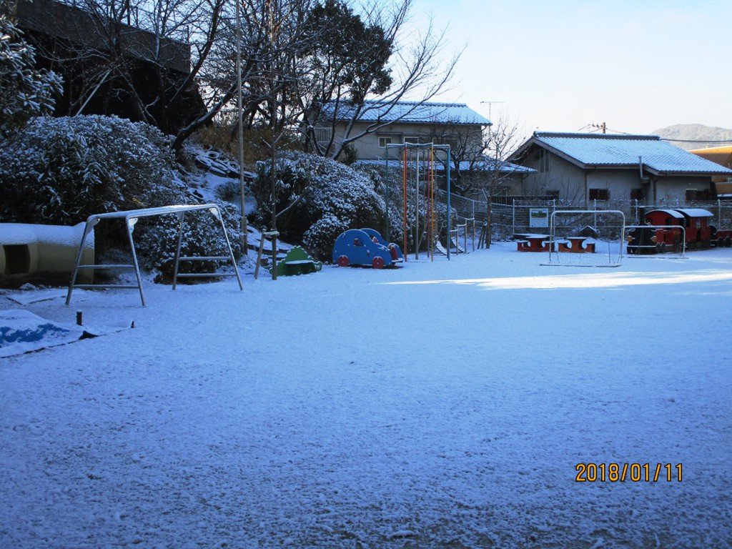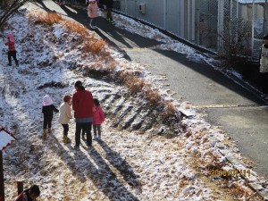 幼稚園では…地肌がぎりぎり隠れるほどの雪化粧