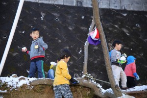 子どもたちは、「雪合戦しよう!」「雪だるま作ろう!」と