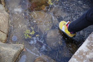 あちらこちらで、「ズブズブ」「ドボドボ」足が池の中にボチャン